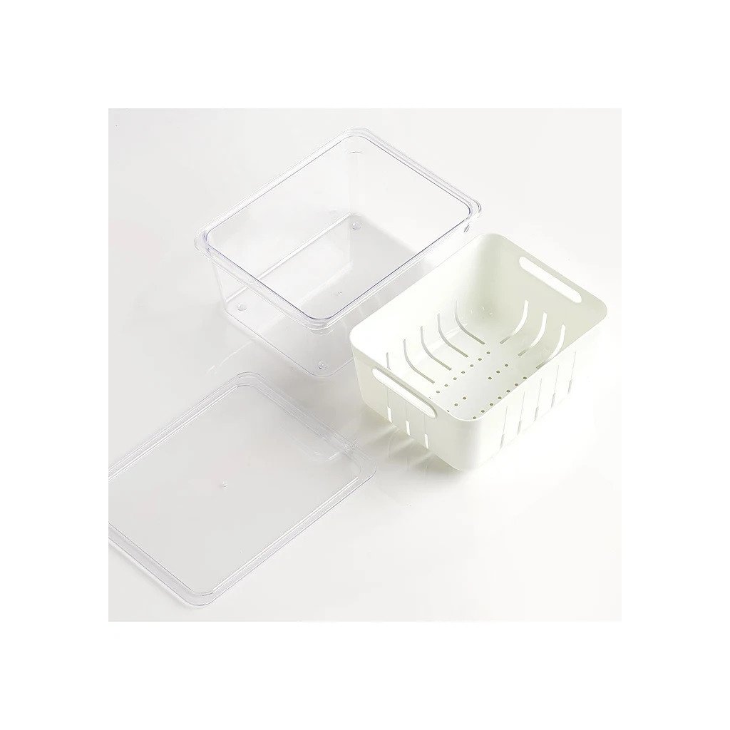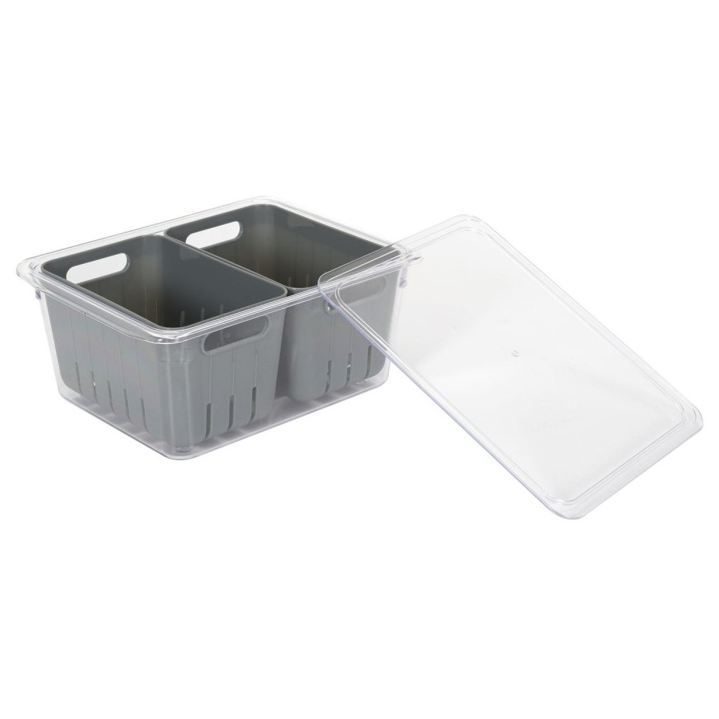 Udržujte ovocie a zeleninu dlhšie čerstvé a vašu chladničku dokonale zorganizovanú! Táto praktická nádoba s dvoma vyberateľnými košíkmi vám uľahčí nielen skladovanie, ale aj oplachovanie potravín. Priehľadný dizajn zaistí prehľad o obsahu bez toho, aby ste museli otvárať veko.