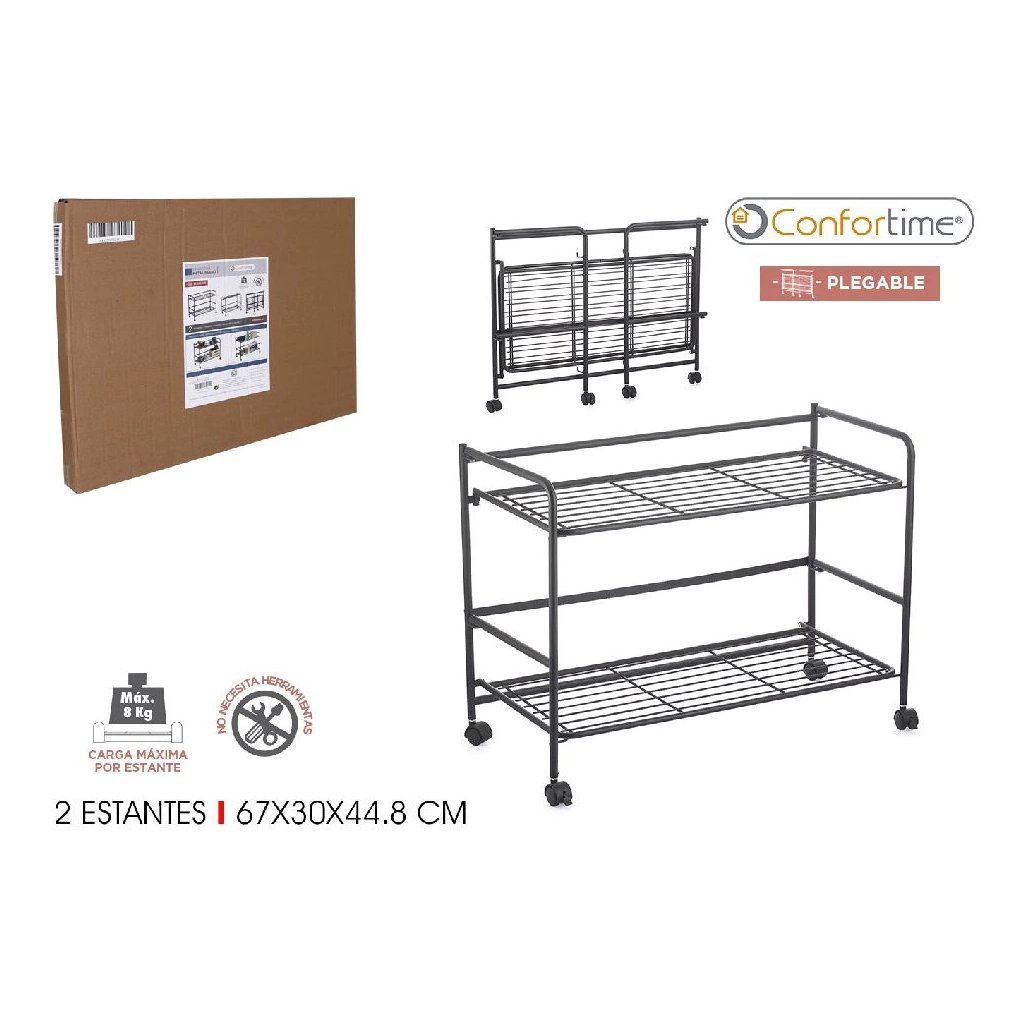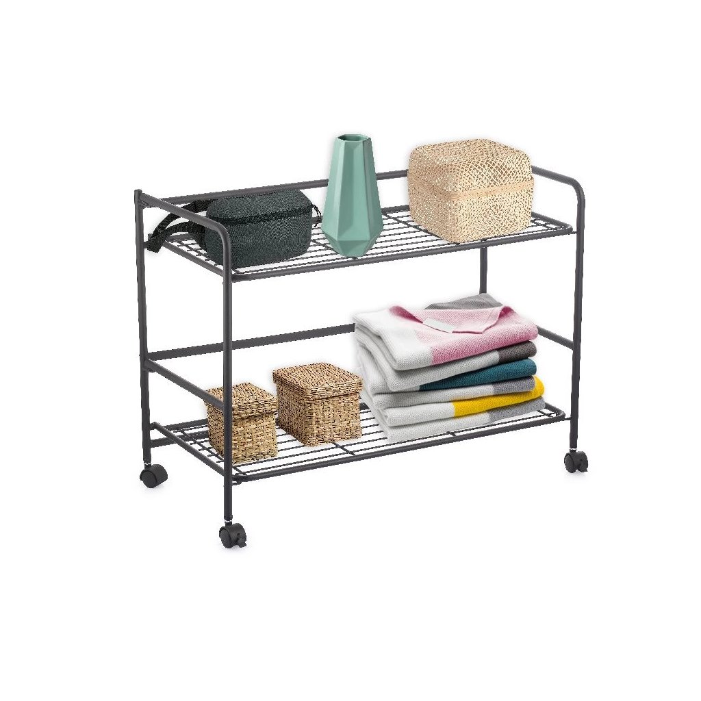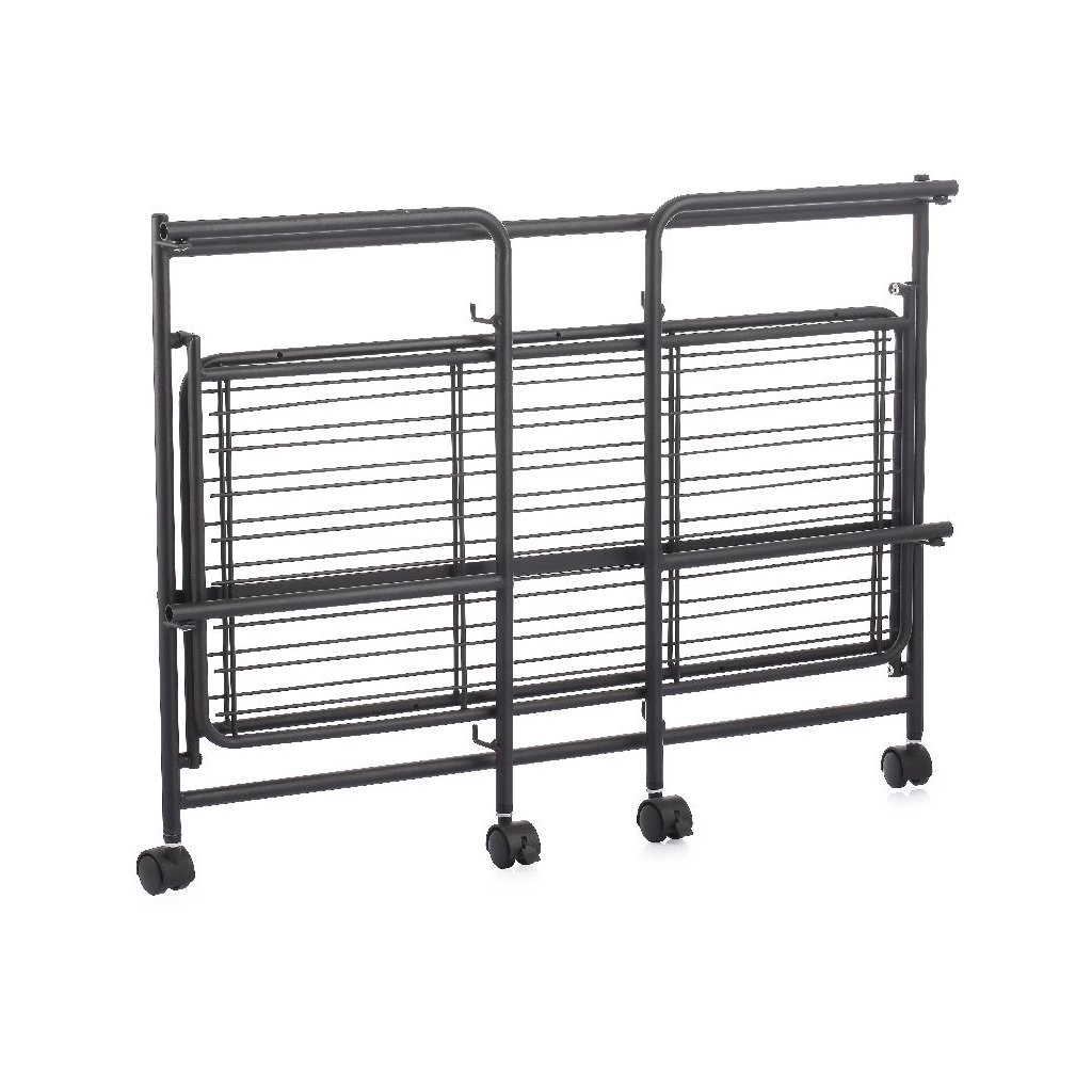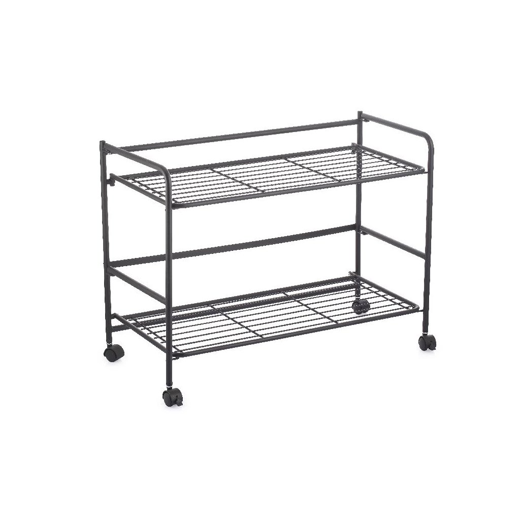 2. akosť - Pojazdný regál, skladacia polica 2 poschodová XXL - 67 x 30 x 45 cm, čierna