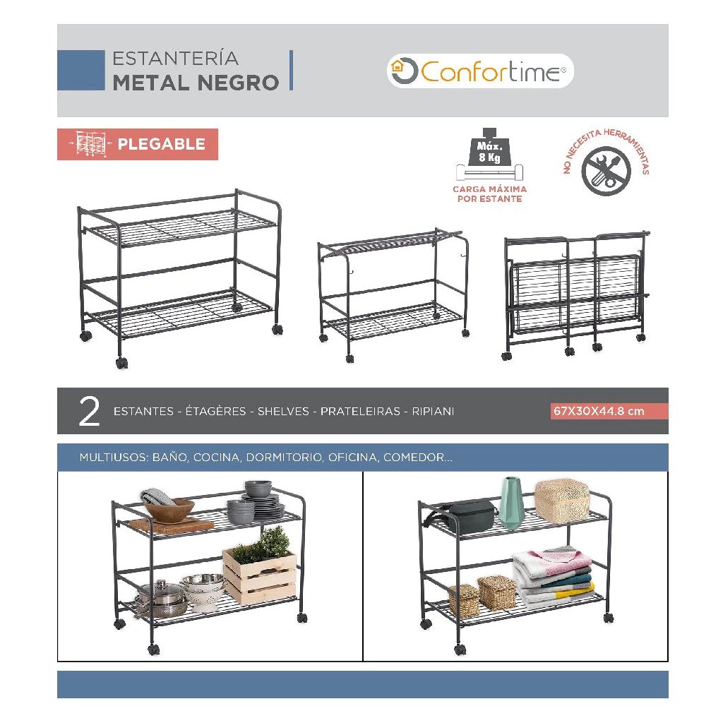 Tento kovový regál je mimoriadne praktický vďaka svojej mobilite a možnosti rýchleho zloženia. Udrží poriadok v akejkoľvek miestnosti a ľahko sa prispôsobí vašim potrebám. Keď ho nepotrebujete, zložíte ho naplocho a uložíte.