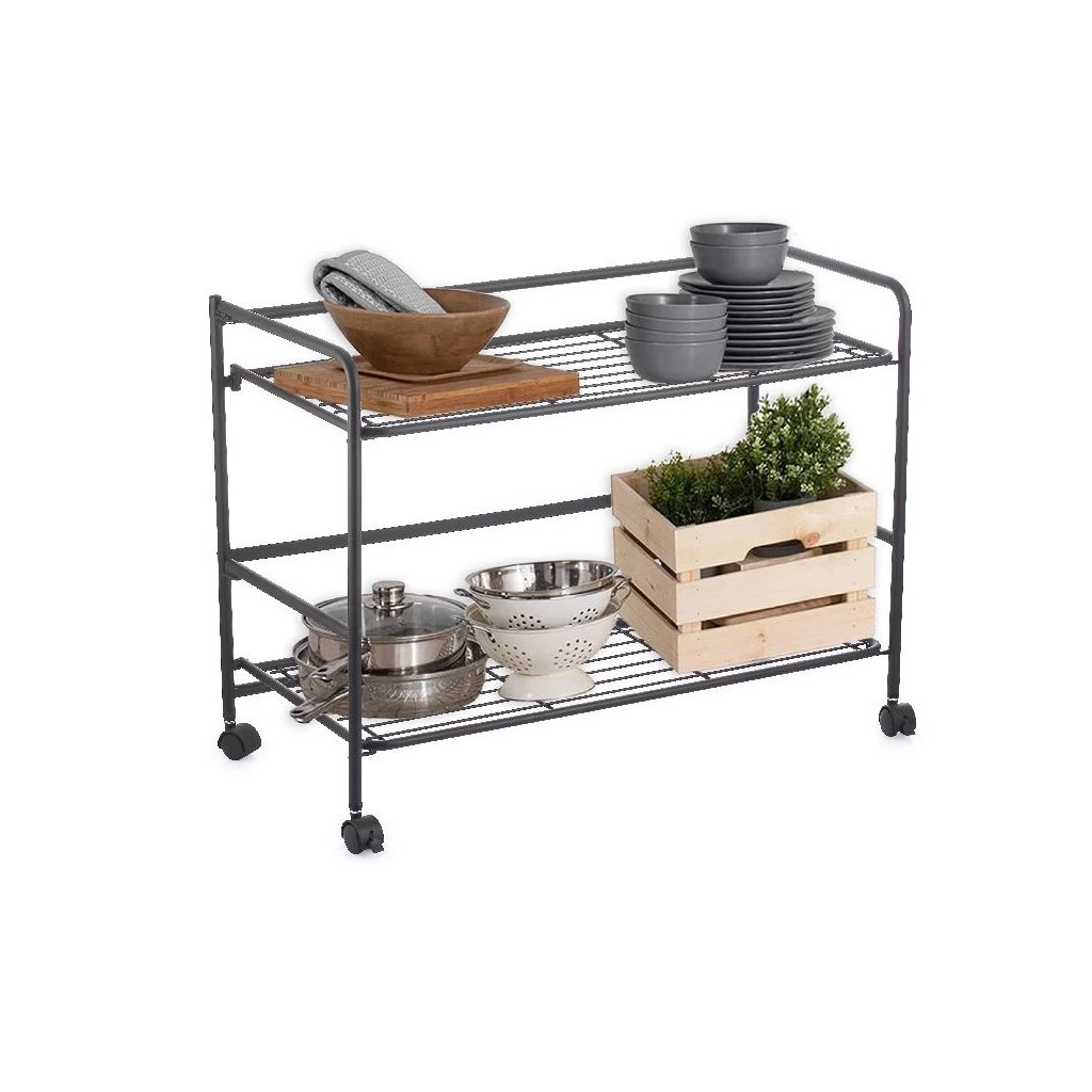 🛒 Pojazdný kovový regál na kolieskach – skladací, dvojposchodový XXL (67×30×44,8 cm)