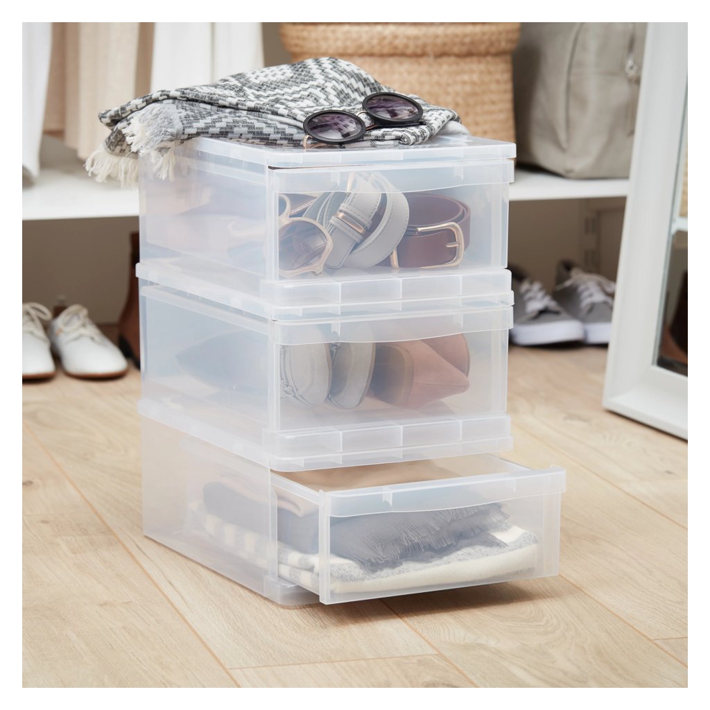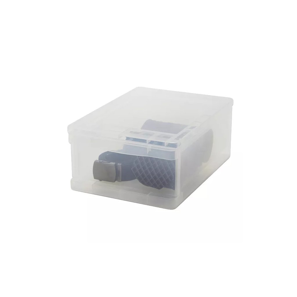 Táto transparentná zásuvka vám pomôže udržať poriadok v každej miestnosti vášho domova. Úspešne do nej môžete schovať hračky, dokumenty a akékoľvek ďalšie príslušenstvo, pre ktoré v šatníku nenájdete miesto. Všetci vieme, že najlepšie sa udržuje obsah pod kontrolou v zásuvkách, ale tam, kde už stolár nepomôže, môžete využiť tieto zásuvky. Výrobok je vyrobený z odolného plastu, ktorý je odolný voči mechanickému poškodeniu a škodlivým účinkom prachu a vlhkosti.