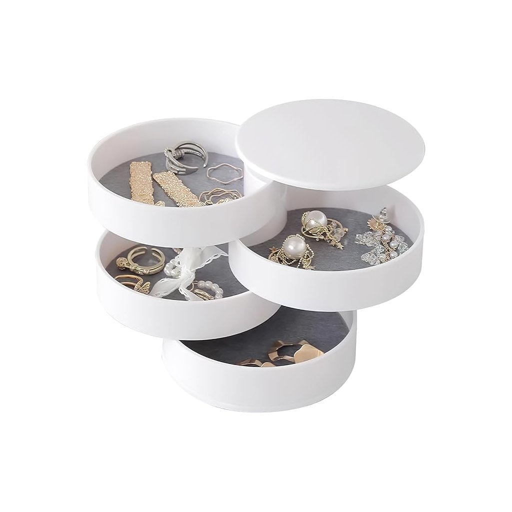 Elegantný, kompaktný a maximálne praktický. Tento otočný 4-poschodový organizér je ideálnym riešením pre všetkých, ktorí chcú mať svoje šperky a drobnosti prehľadne usporiadané a zároveň štýlovo uložené.