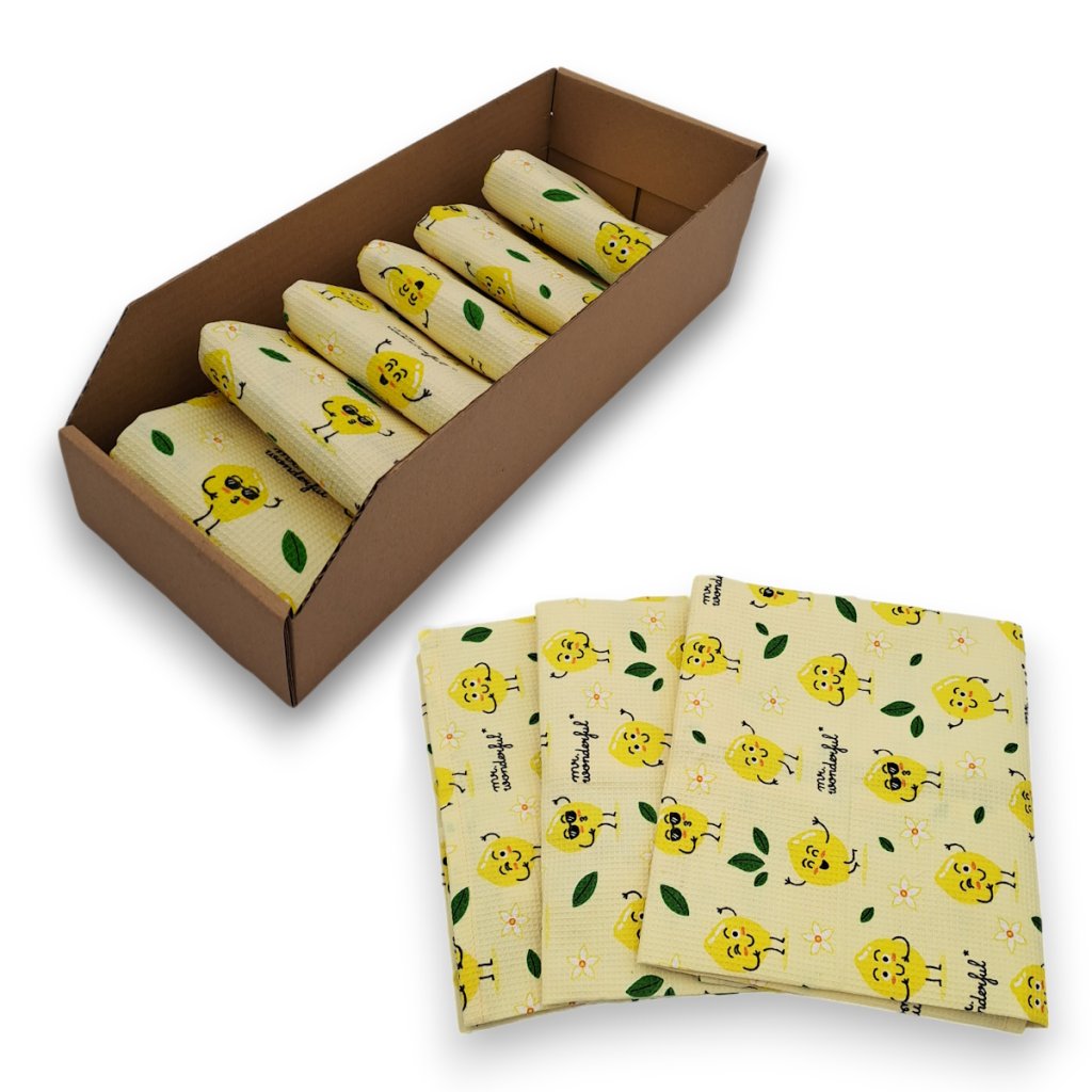 6 ks vaflových kuchynských utierok + úložný box - CITRÓN