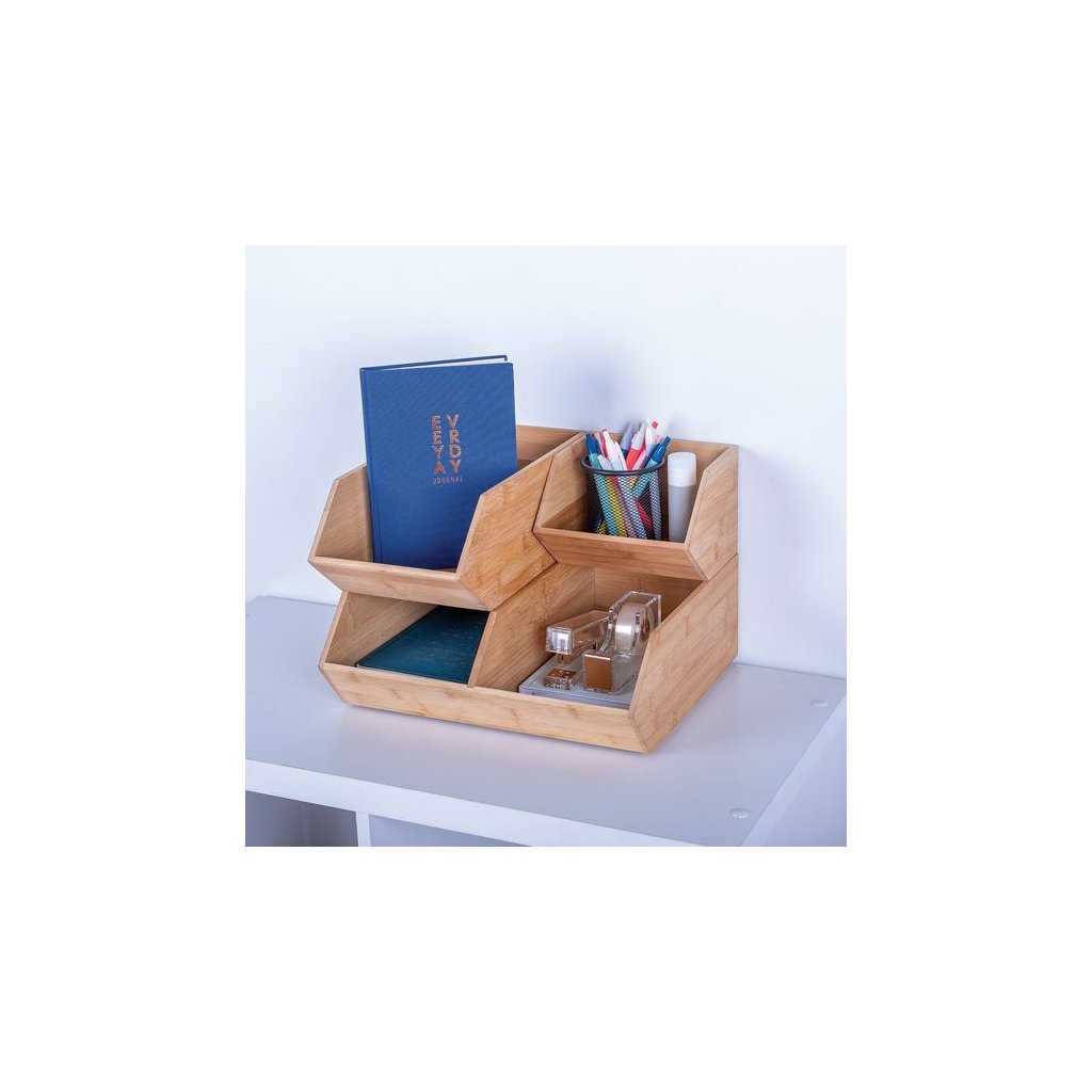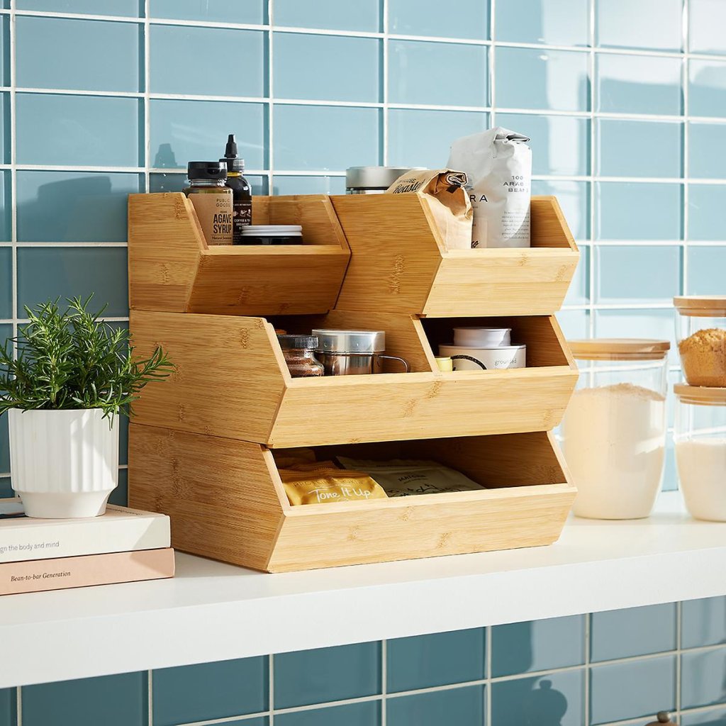 Bambusový organizér, úložné drevené stohovateľné boxy zo série CAJA