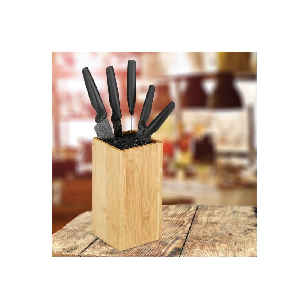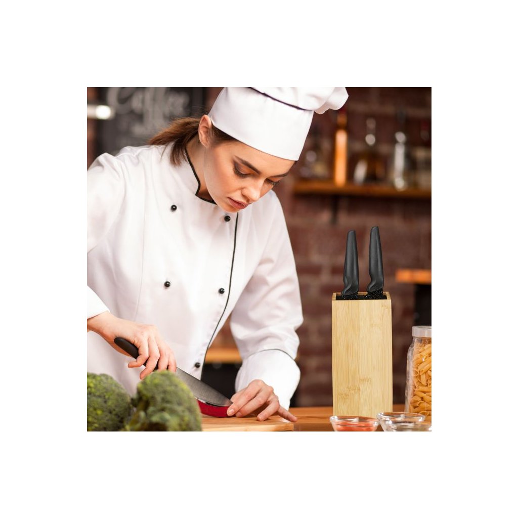 - Kompaktný úložný priestor: nože sú v bloku uložené bezpečne a zároveň sú ľahko dostupné, čo prispieva k lepšej organizácii v kuchyni.