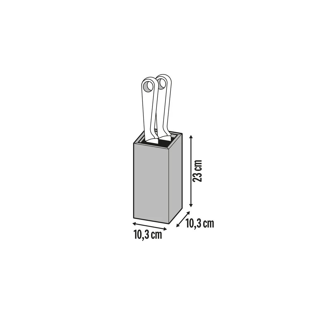 - Univerzálny dizajn: blok je vybavený vyberateľnou plastovou štetinovou vložkou, ktorá umožňuje individuálne umiestnenie nožov rôznych veľkostí a typov.