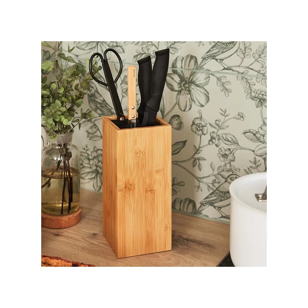 Tento pevný bambusový držiak na nože je perfektným riešením pre všetkých, ktorí chcú mať vo svojej kuchyni poriadok a bezpečne uložené nože. Vďaka svojmu praktickému a elegantnému dizajnu poskytuje kompaktný úložný priestor až pre 6 nožov a chráni ich čepele pred poškodením.
