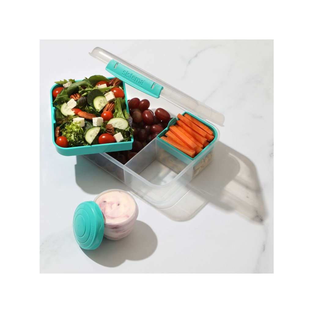 Hľadáte praktický a hygienický spôsob, ako zabaliť desiatu alebo obed? Sistema® TO GO™ ponúka 6 priehradiek, ktoré umožňujú oddelené uloženie rôznych druhov potravín, takže si užijete pestrý a čerstvý obed alebo desiatu až do chvíle konzumácie.
