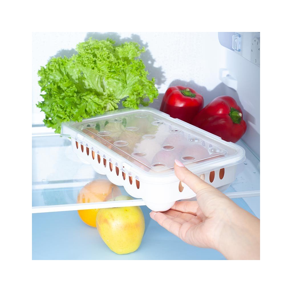 Tento praktický box na vajcia zabezpečí ich bezpečné uloženie, organizáciu a ochranu pred poškodením. Vďaka stohovateľnému veku ušetríte miesto v chladničke a budete mať vajcia vždy ľahko dostupné.