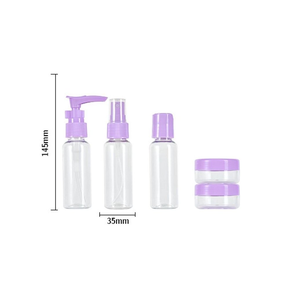 Cestovná sada MINI fľaštičiek do lietadla, 7-dielna, vrátane taštičky - fialová