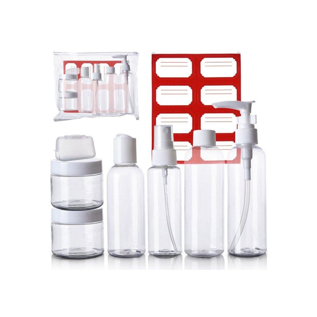 Táto súprava cestovných fľaštičiek v uzatvárateľnom priehľadnom puzdre vám umožní vziať si len to, čo naozaj potrebujete – a to aj do lietadla alebo na tábor.