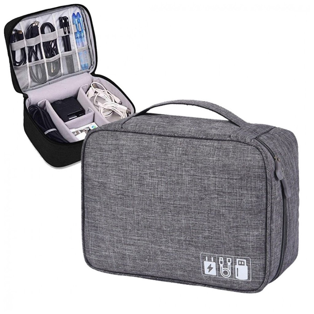 Už žiadne zamotané káble a hľadanie nabíjačiek! Tento cestovný organizér na elektroniku udrží všetky vaše káble, nabíjačky, powerbanky, slúchadlá a ďalšie príslušenstvo na jednom mieste. Flexibilné vnútorné usporiadanie umožňuje prispôsobiť priehradky podľa veľkosti vášho príslušenstva.