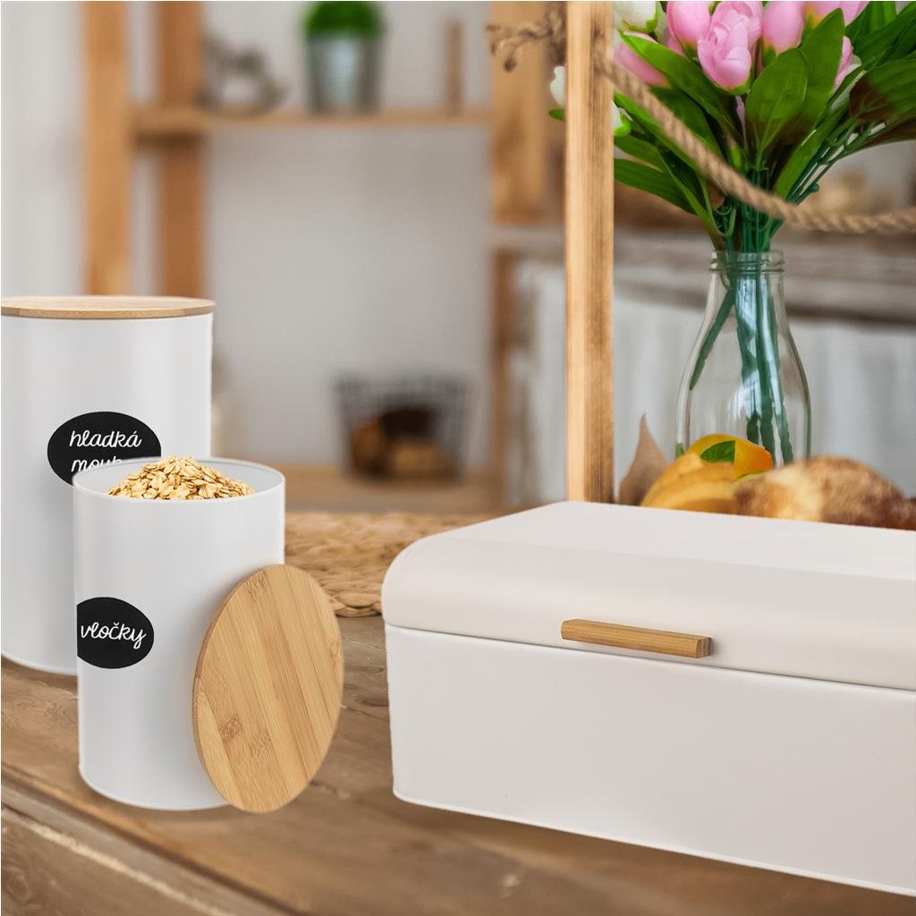 ✔ Štýlová kombinácia materiálov – matný biely plech a prírodná bambusová rúčka