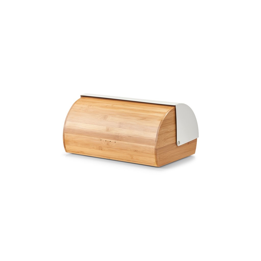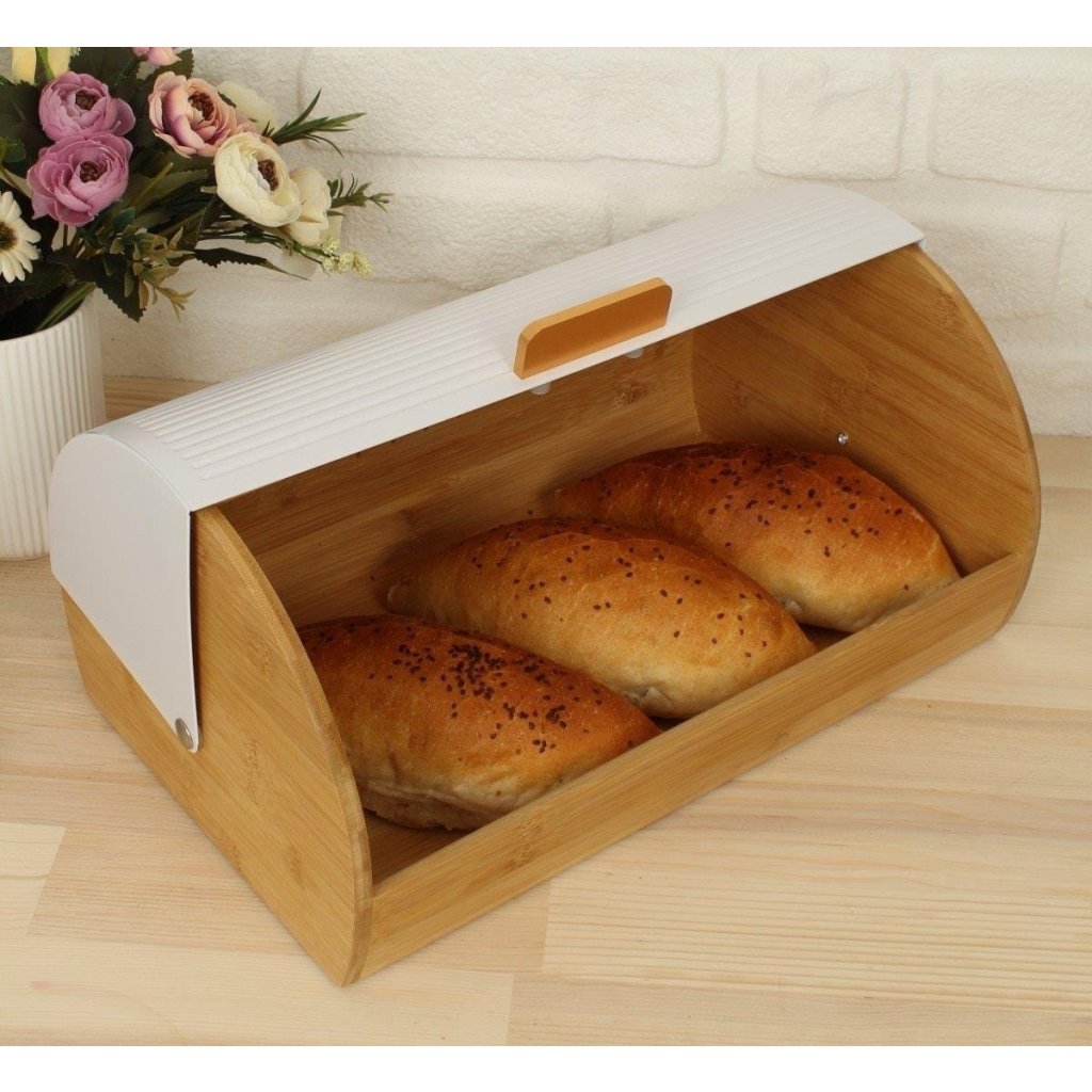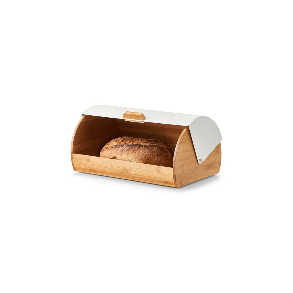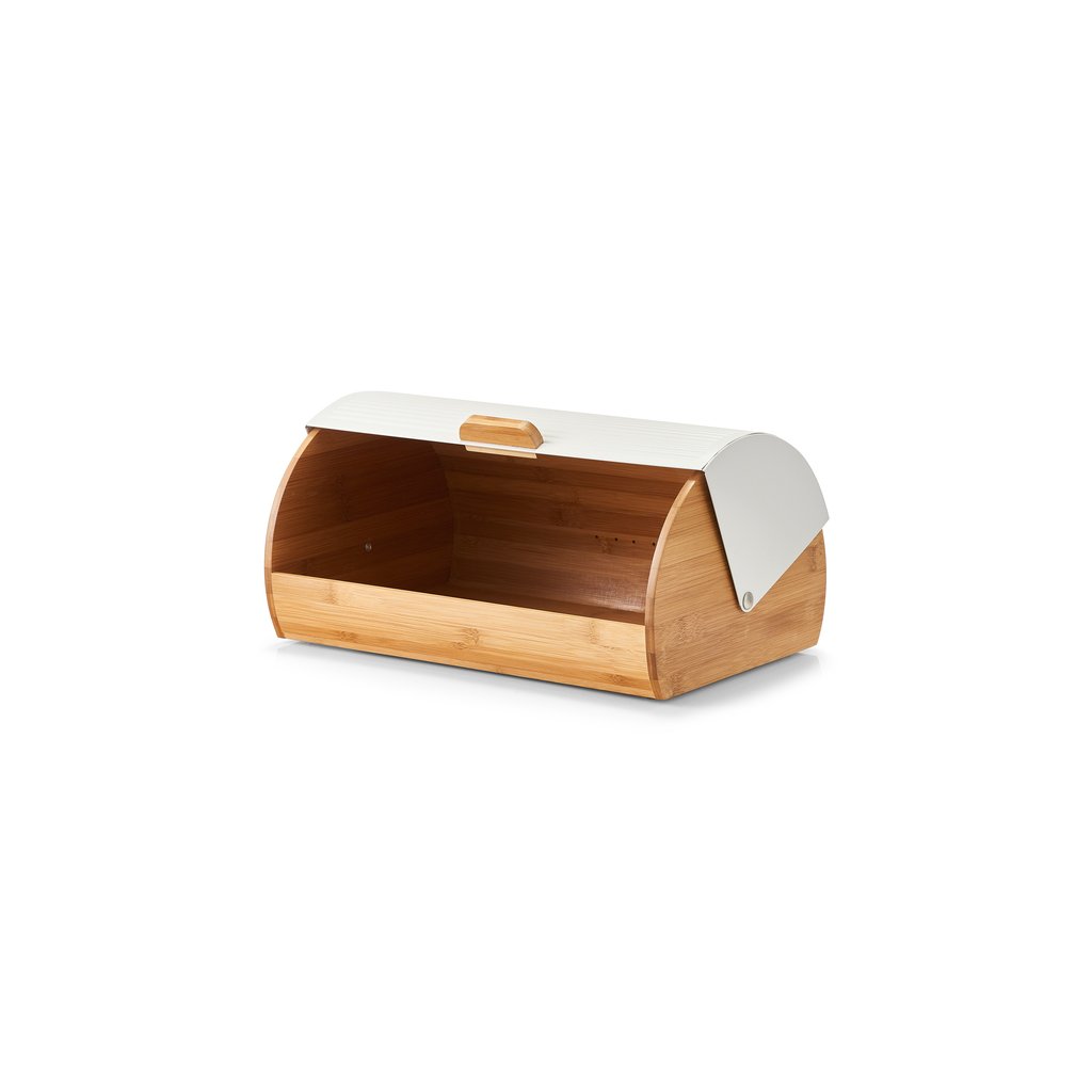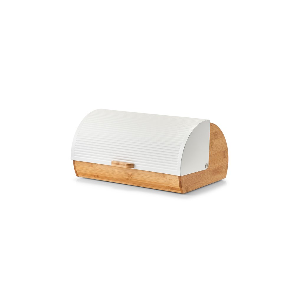Chlebník veľký, bambusový s odklápacím vekom - biely kov