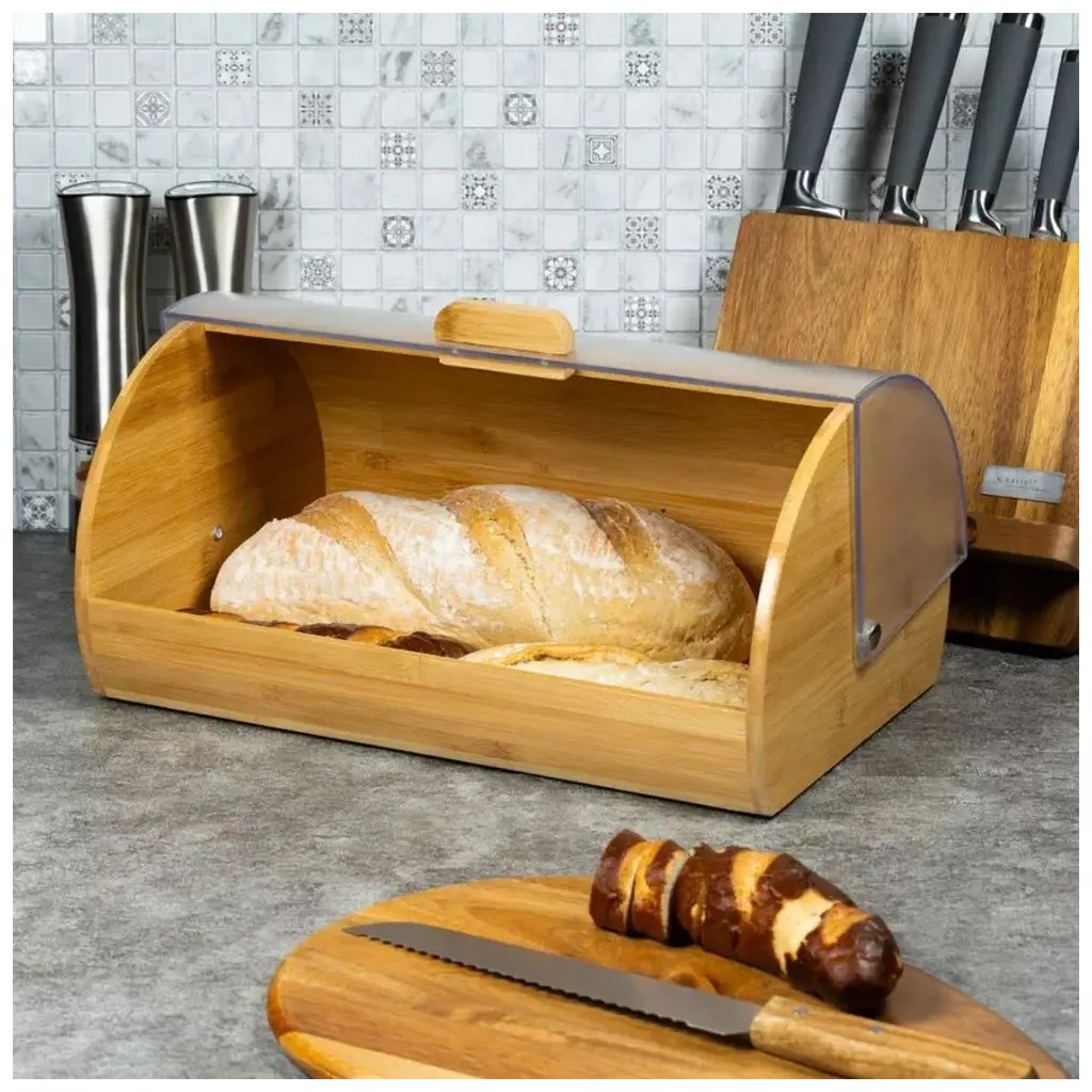 Chlebník veľký, bambusový s transparentným odklápacím vekom