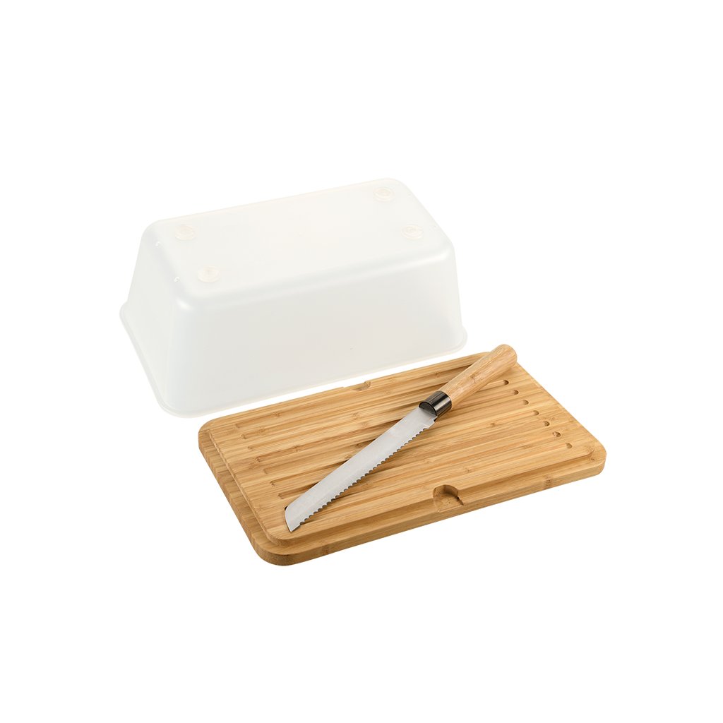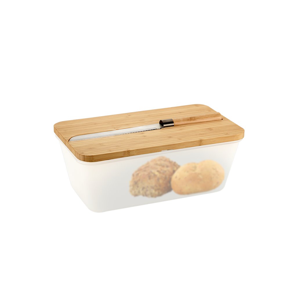 Chlebník veľký, s bambusovým vekom a nožom 3v1 – transparentný