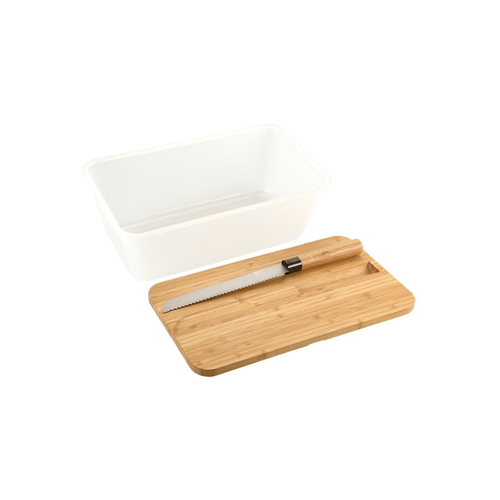 ✔ Multifunkčný dizajn – chlebník, doska na krájanie a nôž uložené prehľadne pohromade
