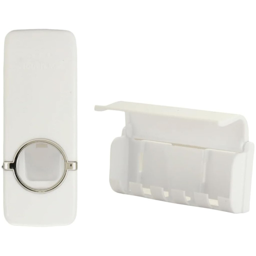 Dávkovač zubnej pasty a držiak zubných kefiek, biely, plast