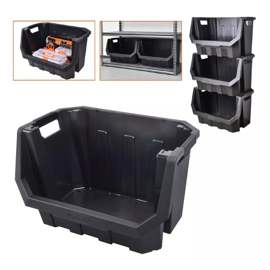 Dielenský úložný box so skosenou hranou HEAVY DUTY, čierny 40x29x28