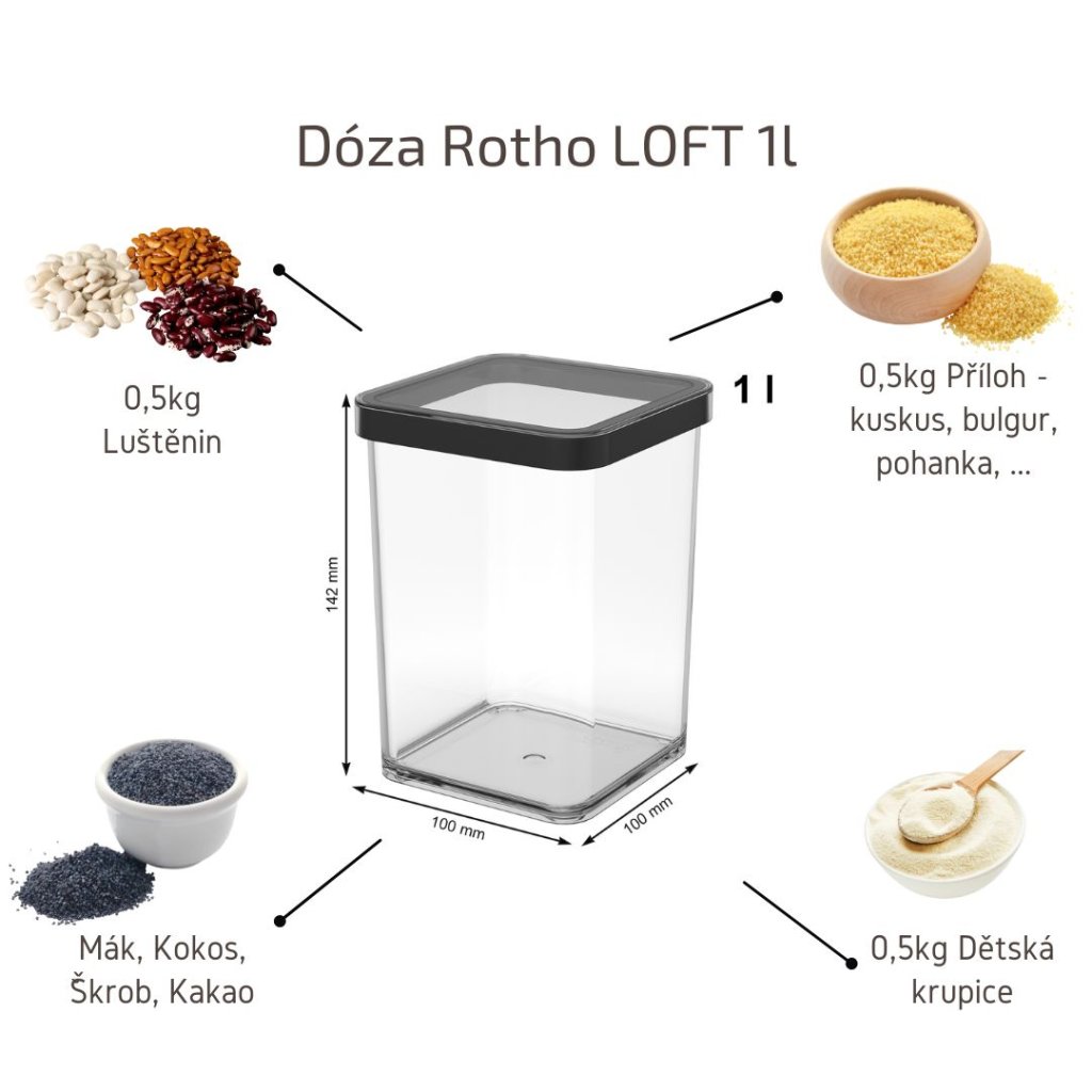 Dóza na potraviny 1l Rotho Loft - MIDDLE Black, čierna