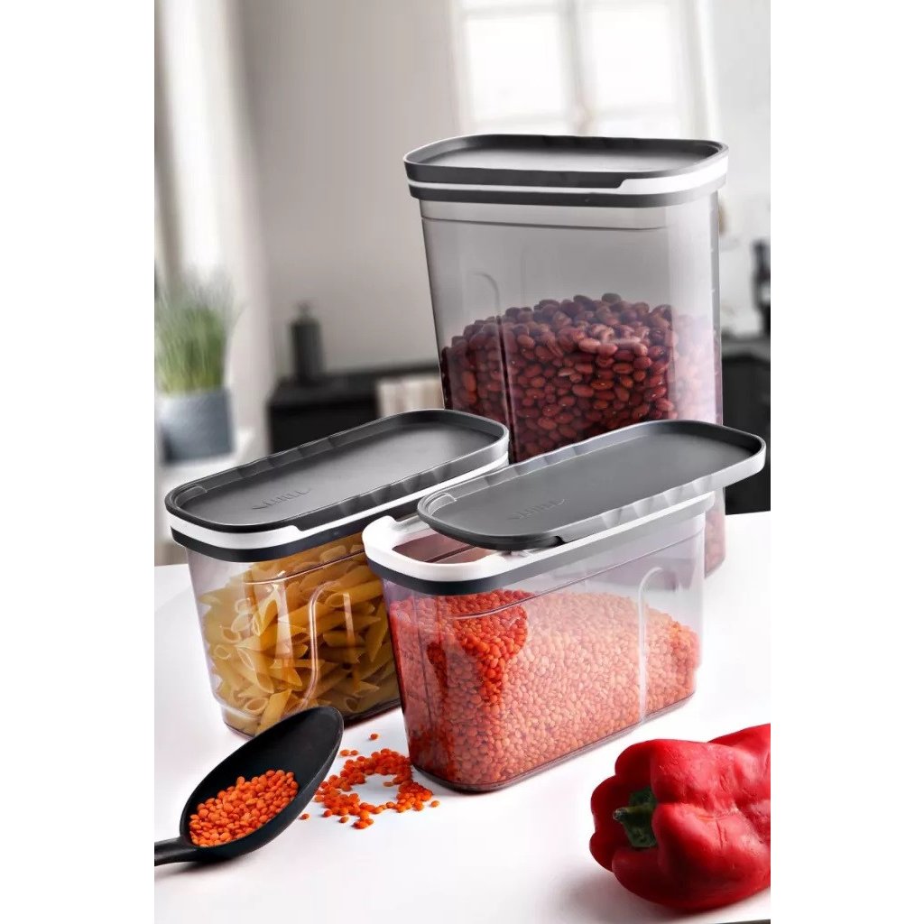 Už žiadne rozsypané balíčky múky alebo vrecúška s cukrom! Táto praktická dóza s dávkovacím posúvacím uzáverom je ideálnym riešením na prehľadné a hygienické skladovanie suchých potravín. Či už varíš alebo pečieš, odmerka na viečku ti pomôže s presným dávkovaním – bez zbytočného neporiadku.