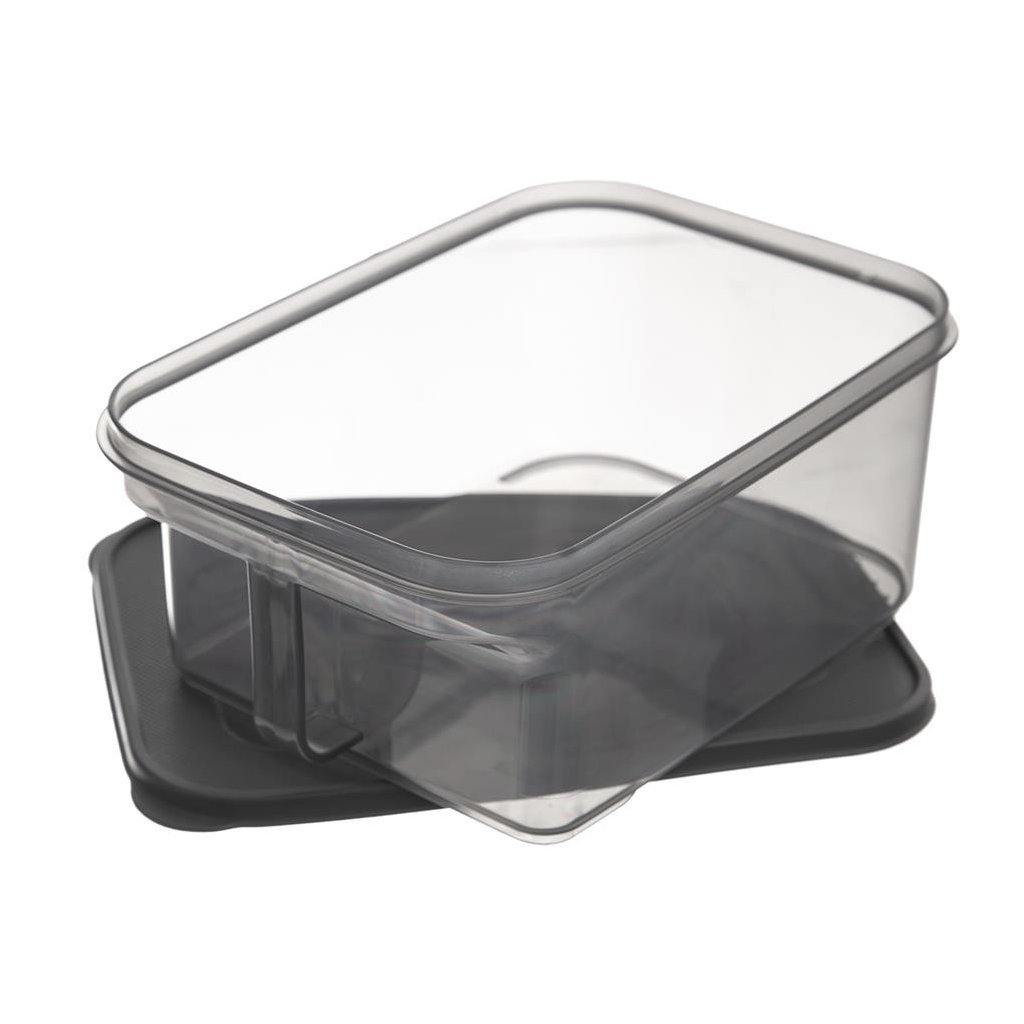 - Dobré tesnenie: Viečko zabraňuje rozsypaniu potravín, ich zvlhnutiu alebo preberaniu pachov z ostatných potravín v skrinke.