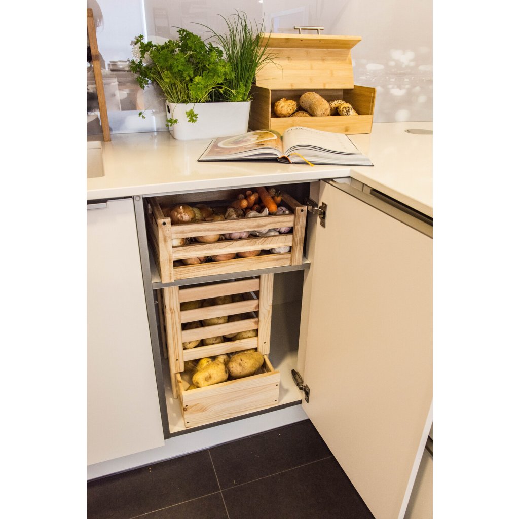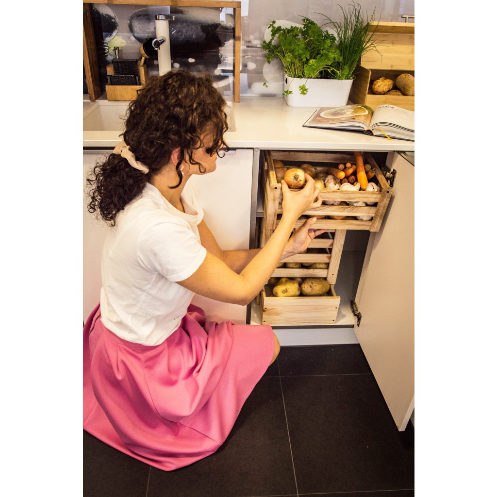 Potrebujete praktický a odolný úložný priestor, ktorý jednoducho premiestnite kamkoľvek potrebujete? Drevená bednička na kolieskach je ideálna na skladovanie zemiakov, ale aj ďalšej koreňovej zeleniny alebo jabĺk a hodí sa nielen do kuchyne, ale hlavne do špajzy, komory, pivnice a pod.
