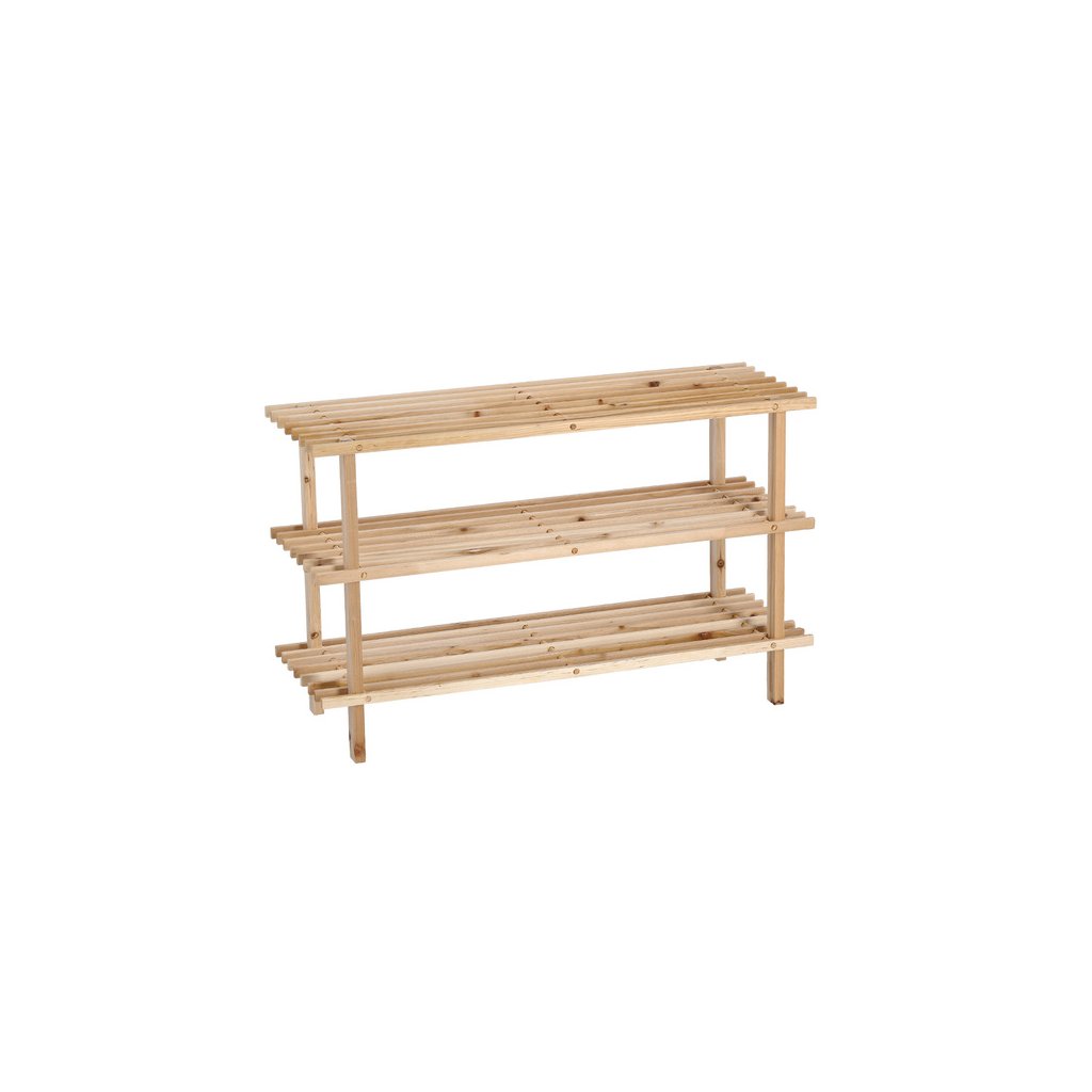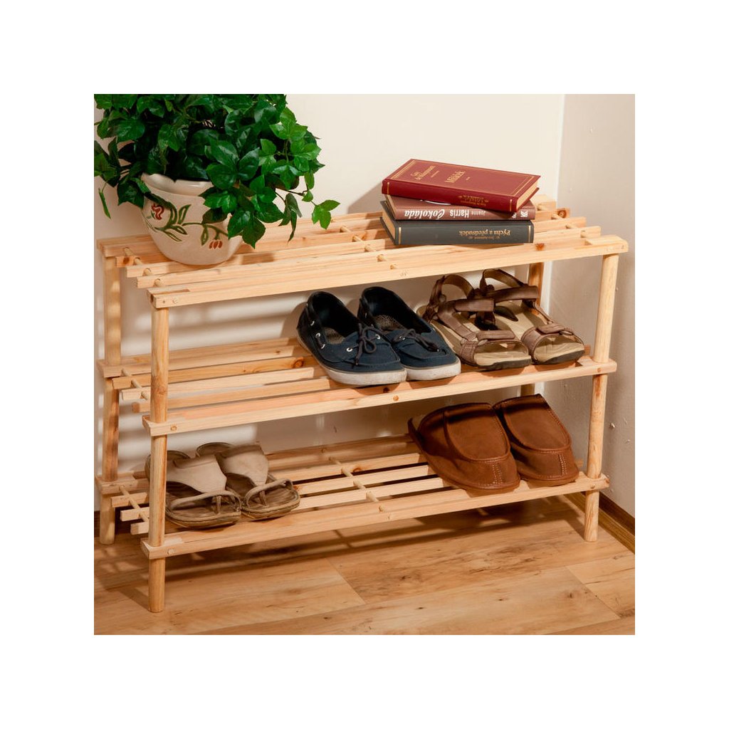 Tento drevený botník z masívnej borovice spája jednoduchý dizajn, vysokú odolnosť a praktické využitie. Využijete ho ako botník do predsiene, ale aj ako policu do špajze alebo komory.