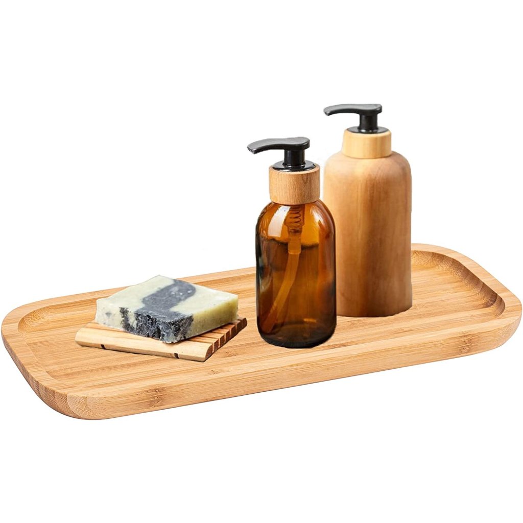 Menší podnos: 25 × 13 × 1 cm – perfektný na dávkovač a pohárik na kefky v kúpeľni alebo ako odkladací podnos