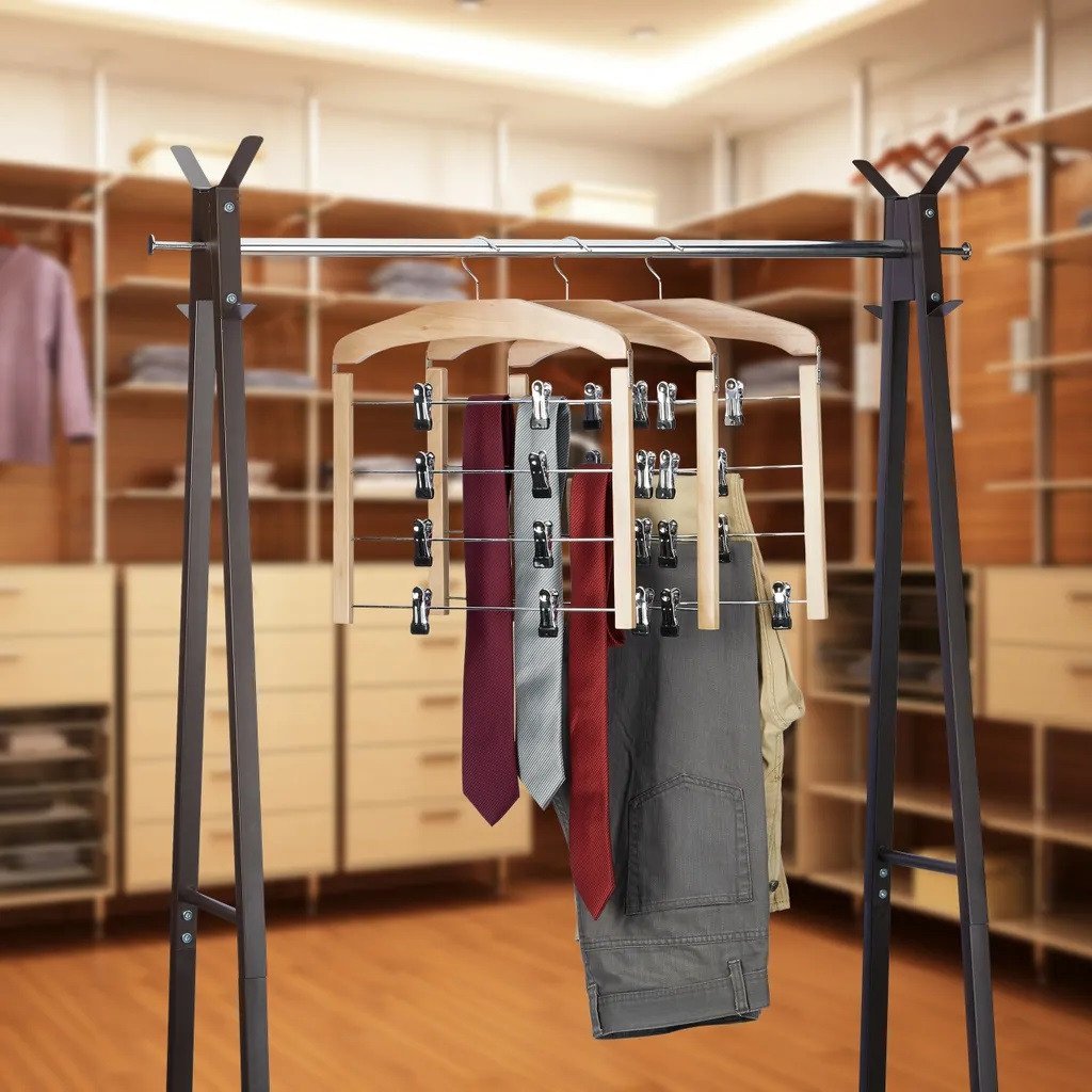 Drevený vešiak s klipmi na nohavice a sukne, 4 úrovne