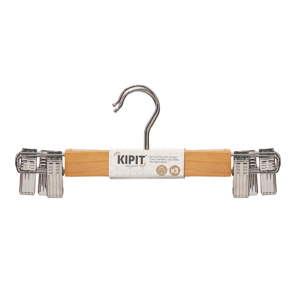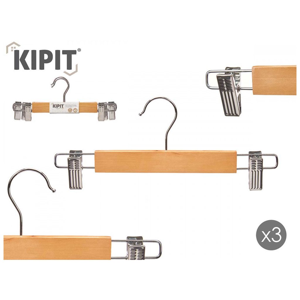 Drevený vešiak s klipom na nohavice a sukne, sada 3ks