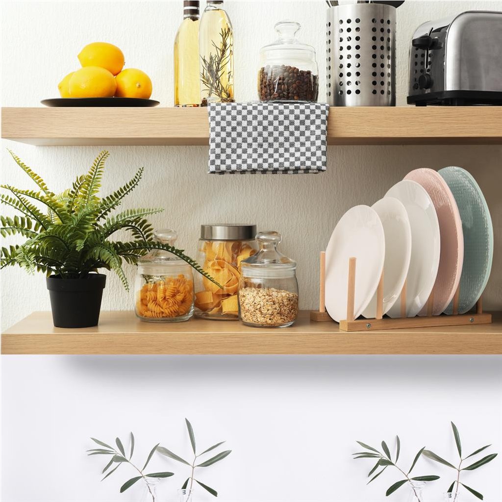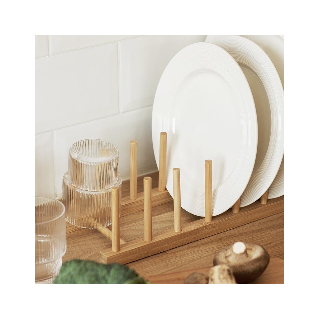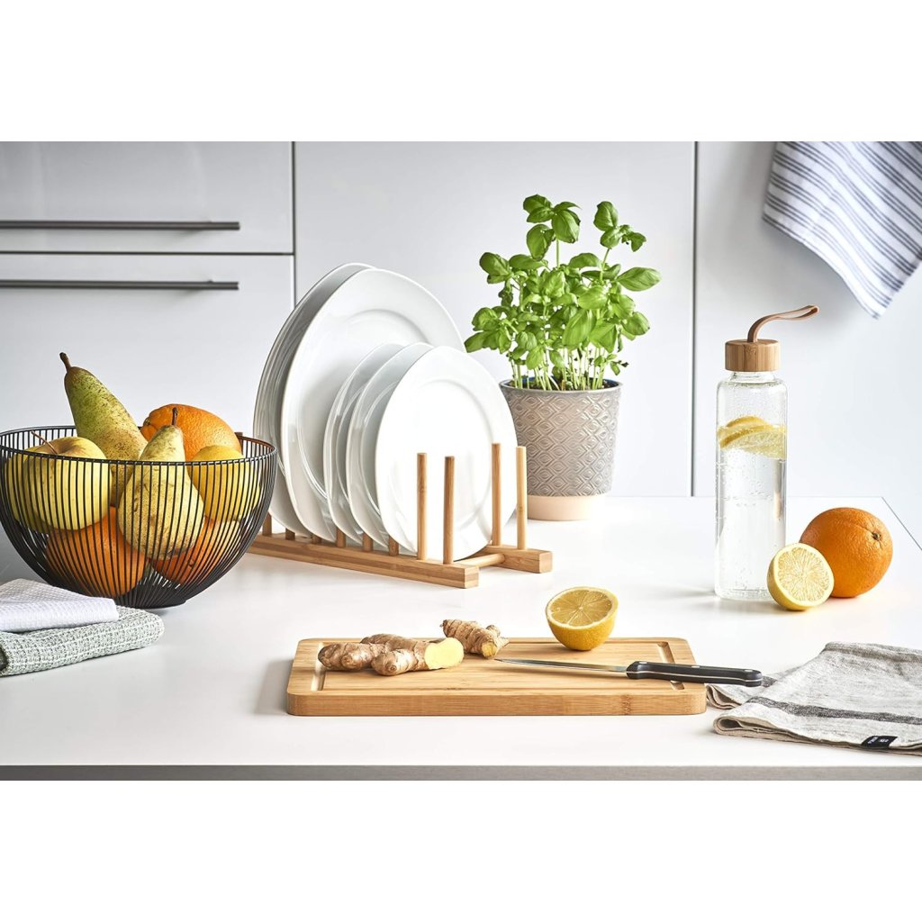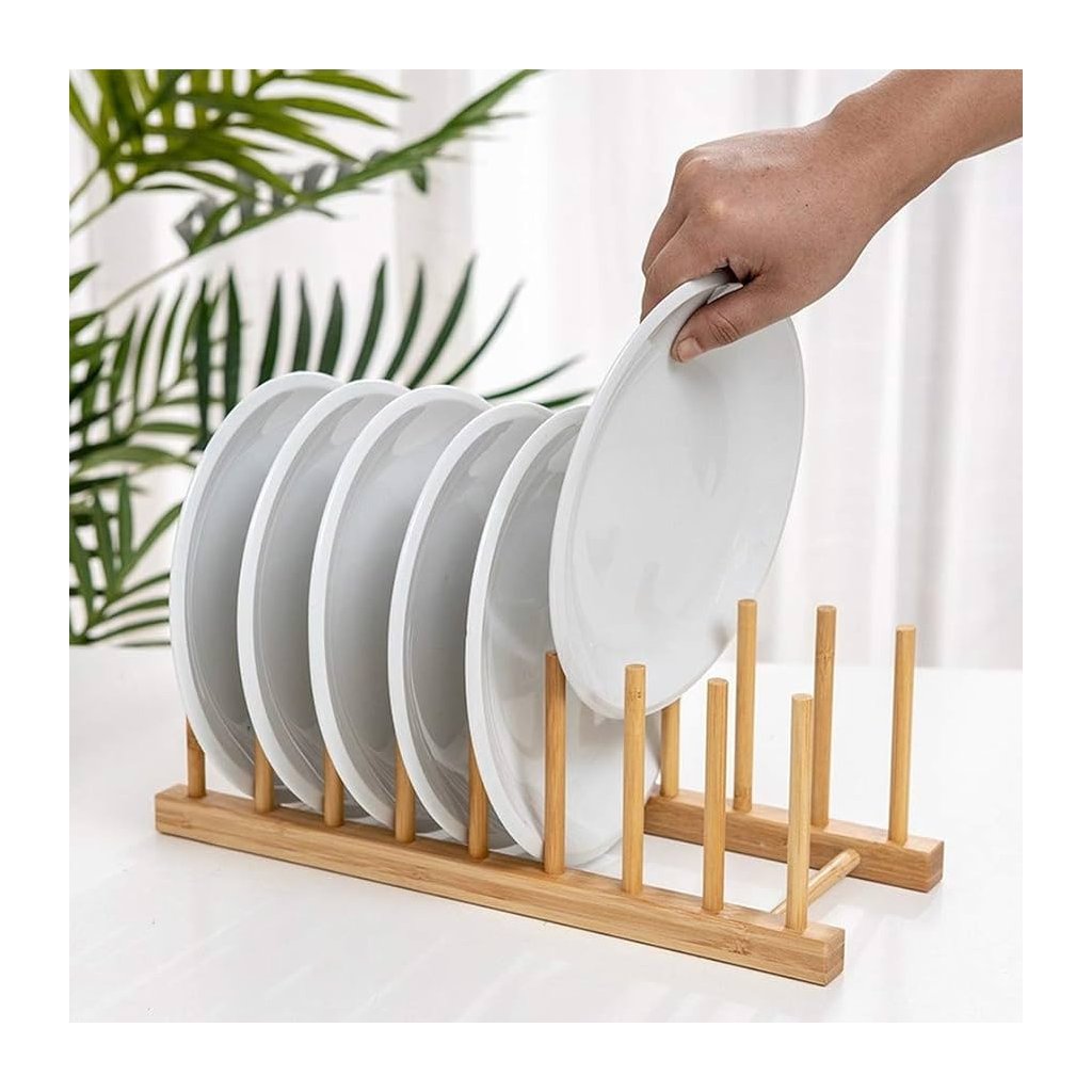 Udržujte vo svojej kuchyni poriadok s univerzálnym dreveným stojanom, ktorý je ideálny pre taniere, pokrievky, dosky, viečka od plastových krabičiek alebo ako odkvapkávač na riad. Tento jednoduchý, ale pevný držiak umožňuje pohodlné a prehľadné usporiadanie kuchynských potrieb.