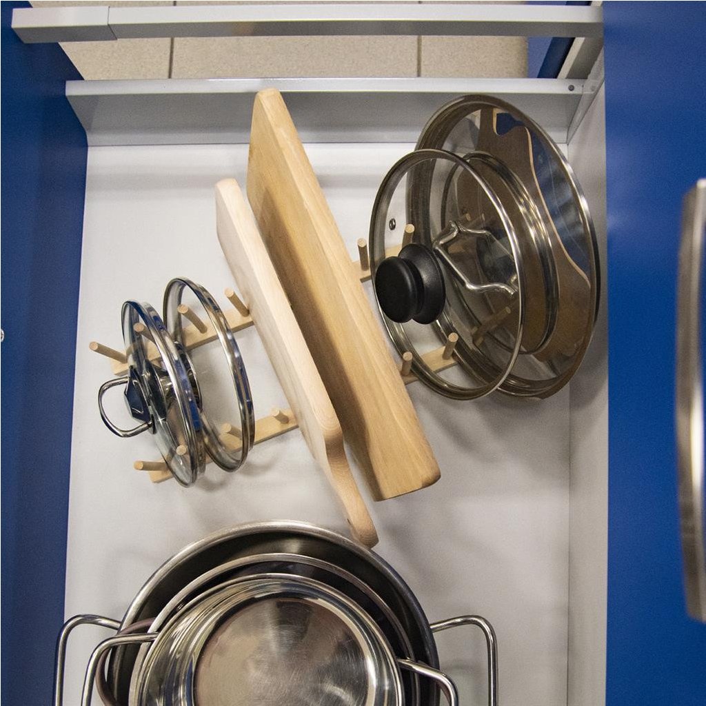 Drevený stojan na taniere, pokrievky a dosky - praktický pomocník do kuchyne