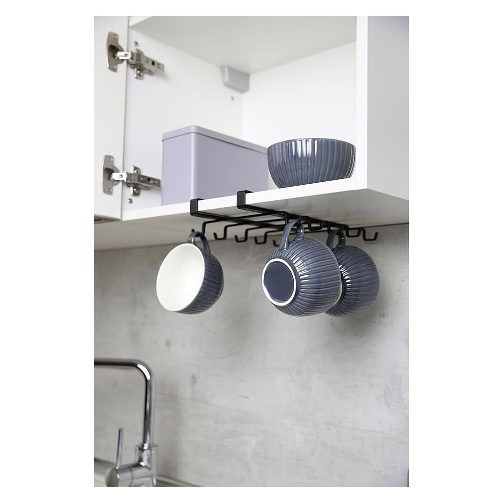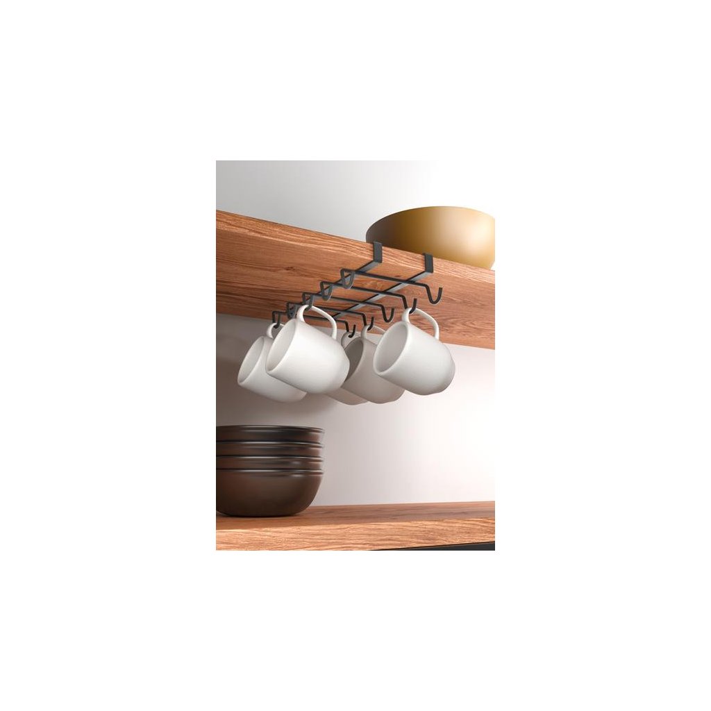 Držiak na hrnčeky s 10 háčikmi, závesný pod policu, bez montáže, MERLIN, čierny