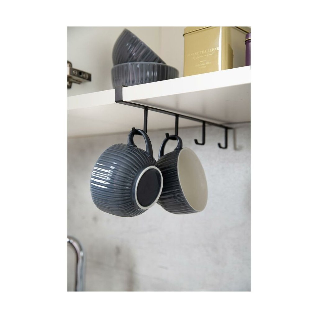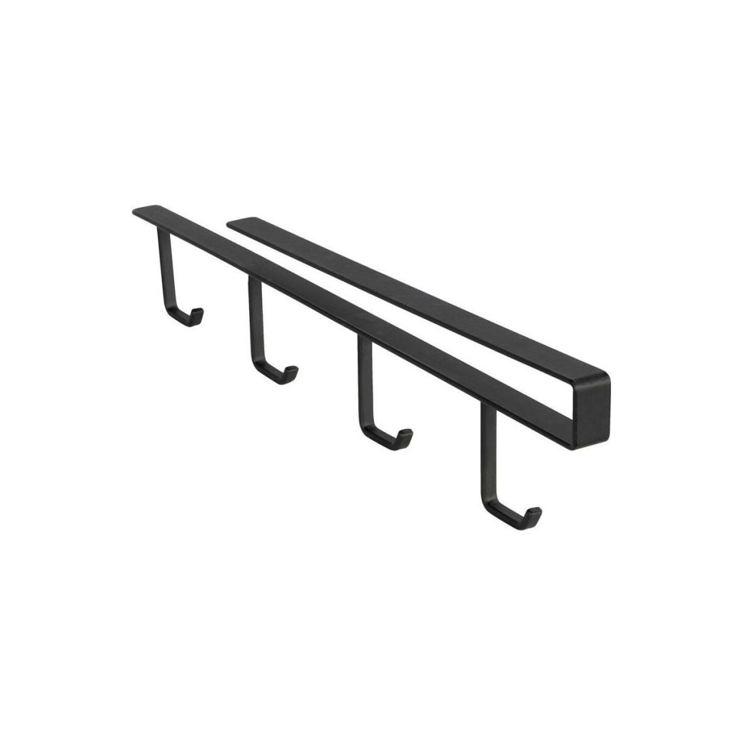 Držiak na hrnčeky so 4 háčikmi, závesný pod policu, bez montáže, MERLIN, čierny