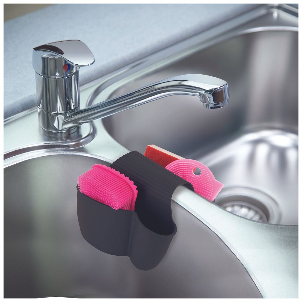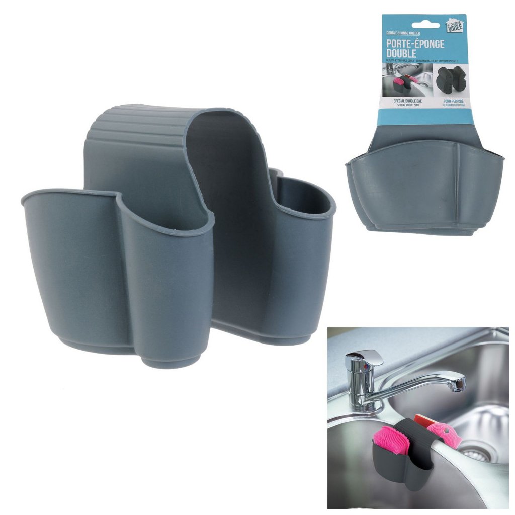 Praktický a hygienický pomocník, ktorý zjednoduší každodennú rutinu v kuchyni. Silikónový dvojitý držiak je určený na zavesenie na okraj dvojitého drezu, kde ponúka šikovné a estetické riešenie na uloženie hubky, drôtenky či handričky. Minimalizuje neporiadok okolo drezu a pomáha udržať umývacie potreby v suchu a čistote.
