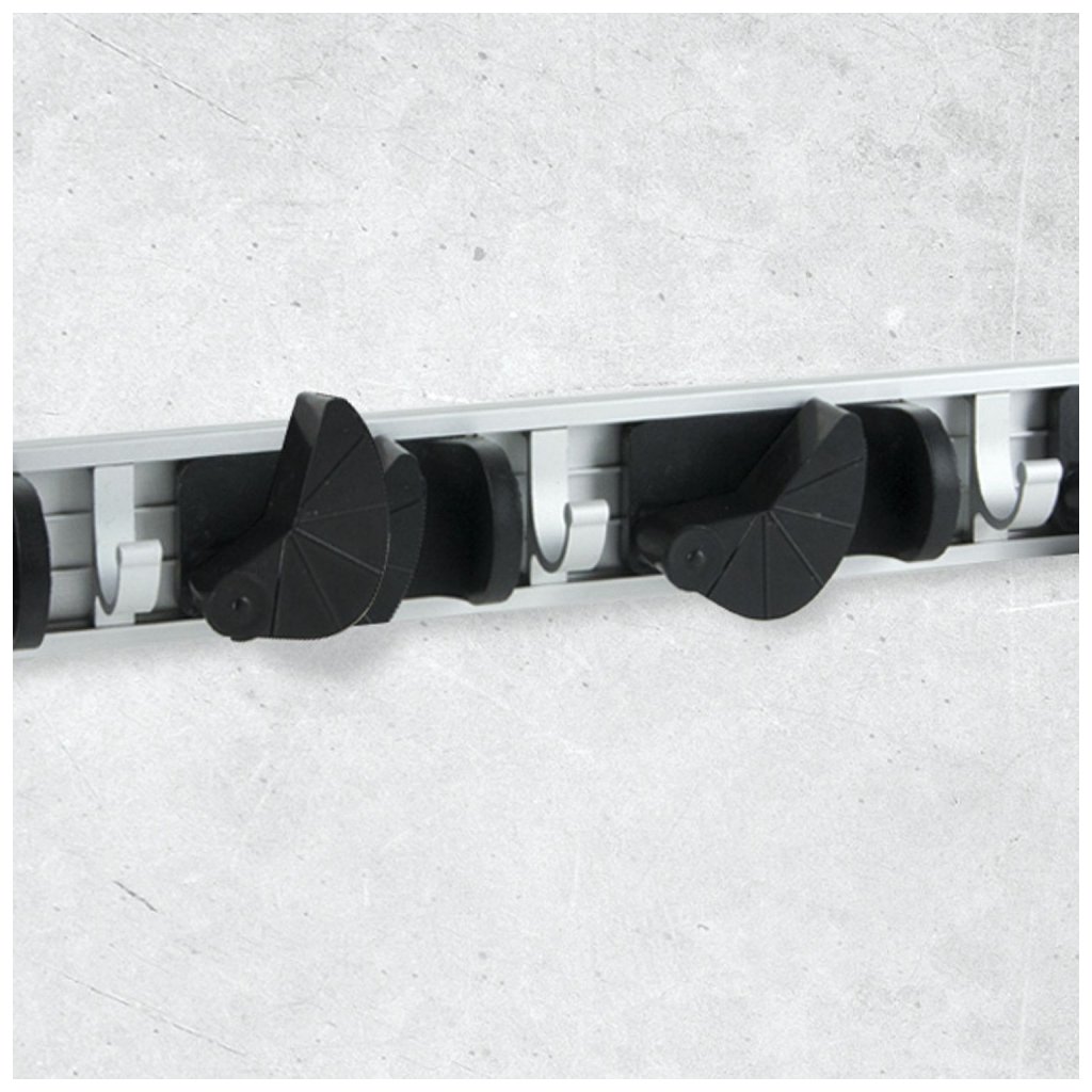 Zbavte sa neporiadku vo svojej domácnosti či garáži s týmto praktickým nástenným držiakom na upratovacie a záhradné náradie. Vďaka dvom držiakom a trom háčikom efektívne usporiadate metly, mopy, hrable, lopaty, športové vybavenie a náradie. Pryžové otvory zaistia, že aj mokré alebo klzké predmety zostanú pevne na svojom mieste.