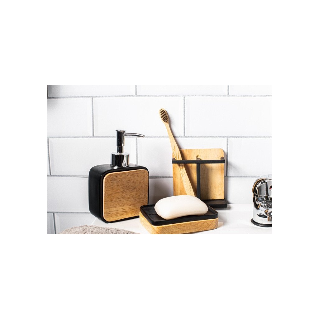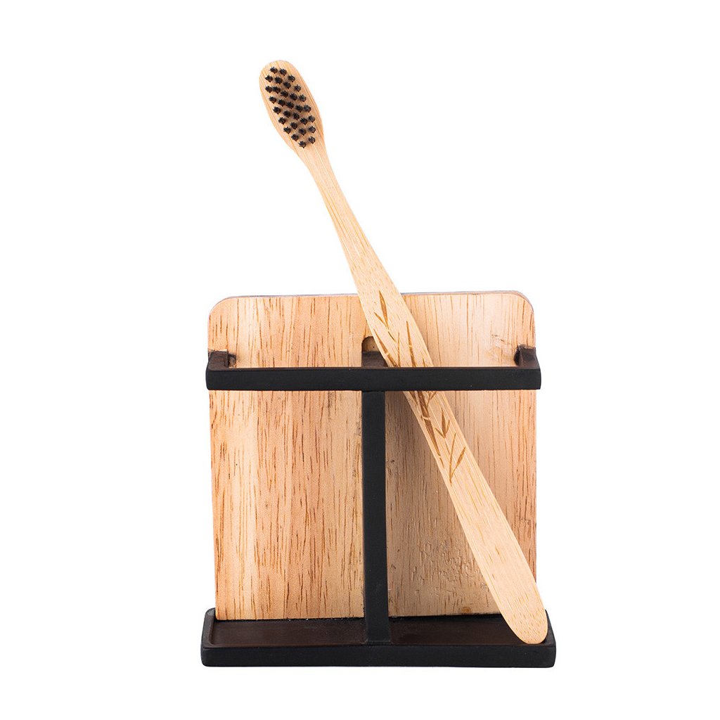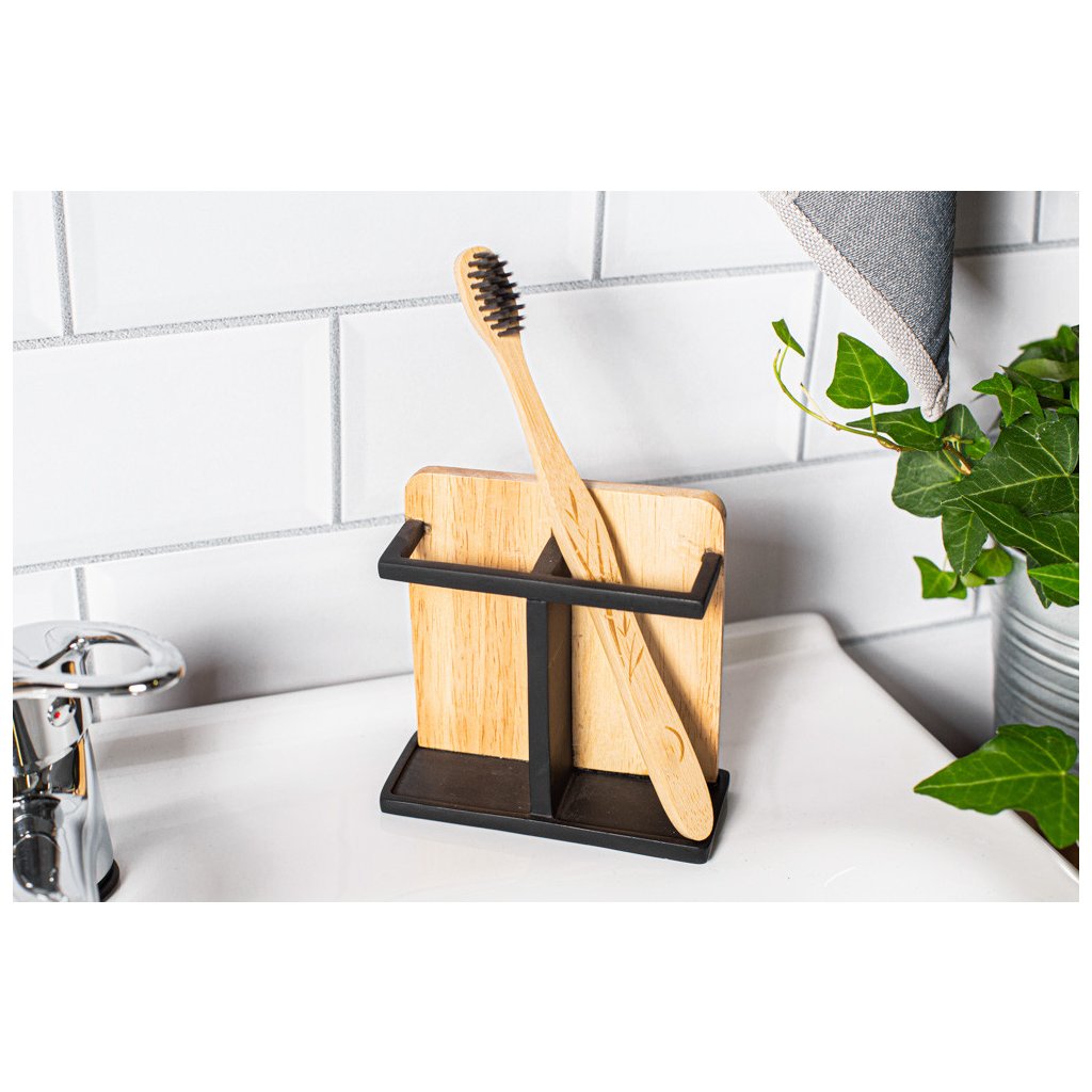 Tento dizajnový stojan na zubné kefky v kombinácii čierneho kovu a prírodného dreva je perfektným doplnkom pre moderné aj klasické interiéry. Nielen že pôsobí štýlovo, ale je aj veľmi praktický – ľahko sa čistí a pojme kefky aj pastu.