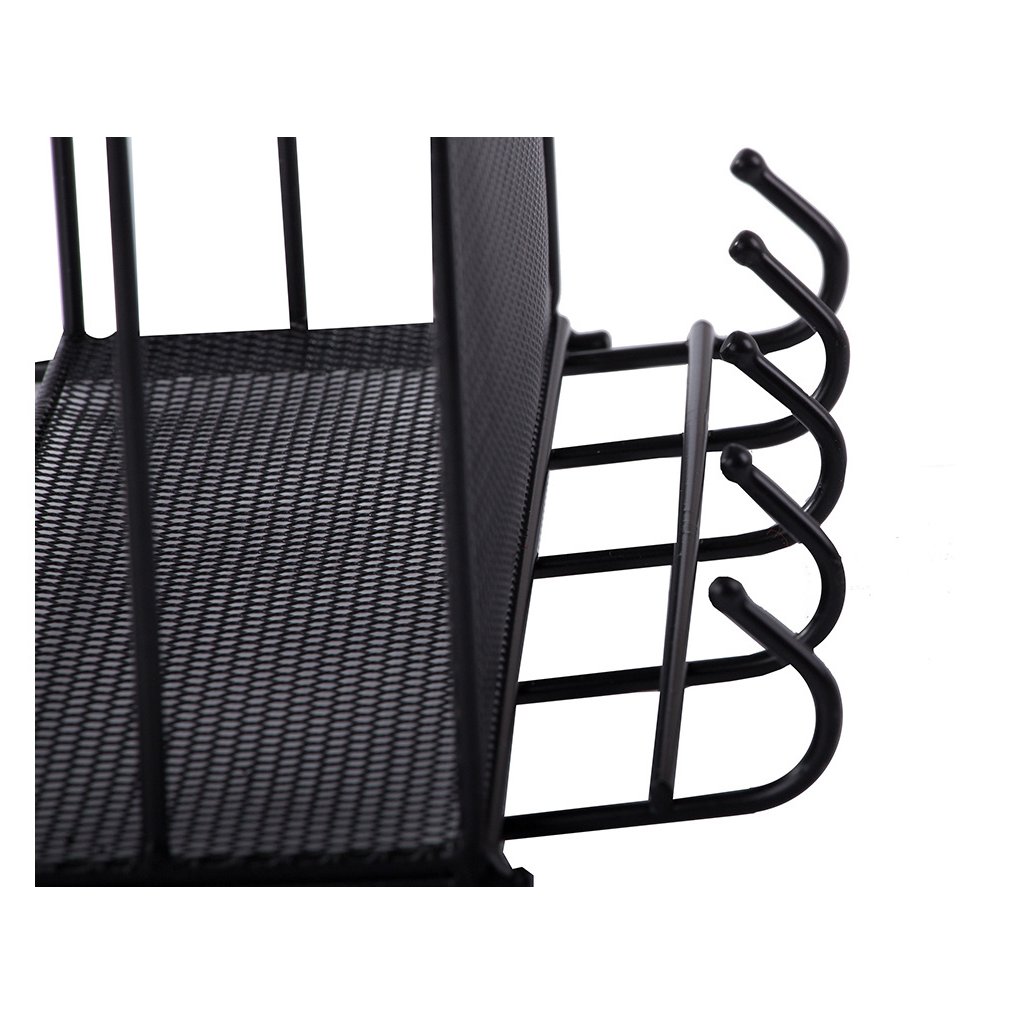 Dvojposchodová závesná kovová polica do kúpeľne s 5 háčikmi, čierny ARGO