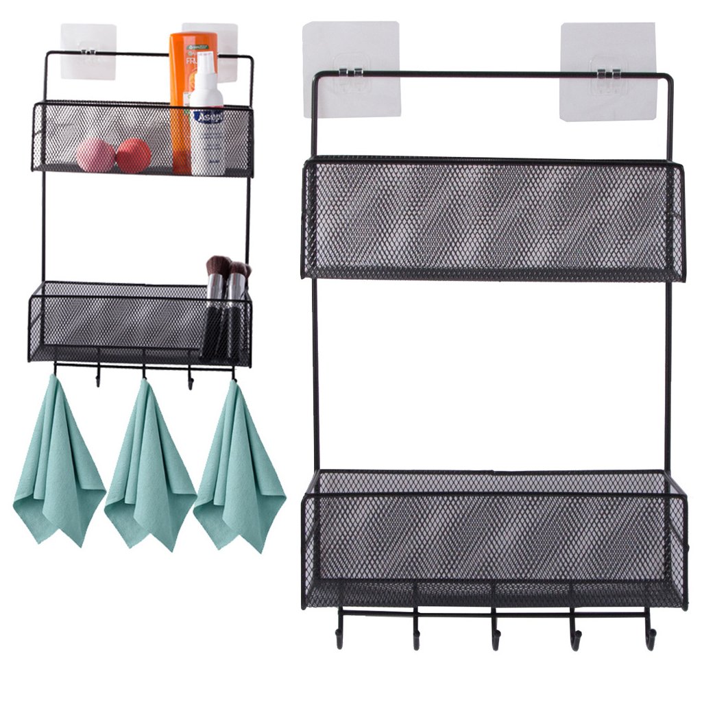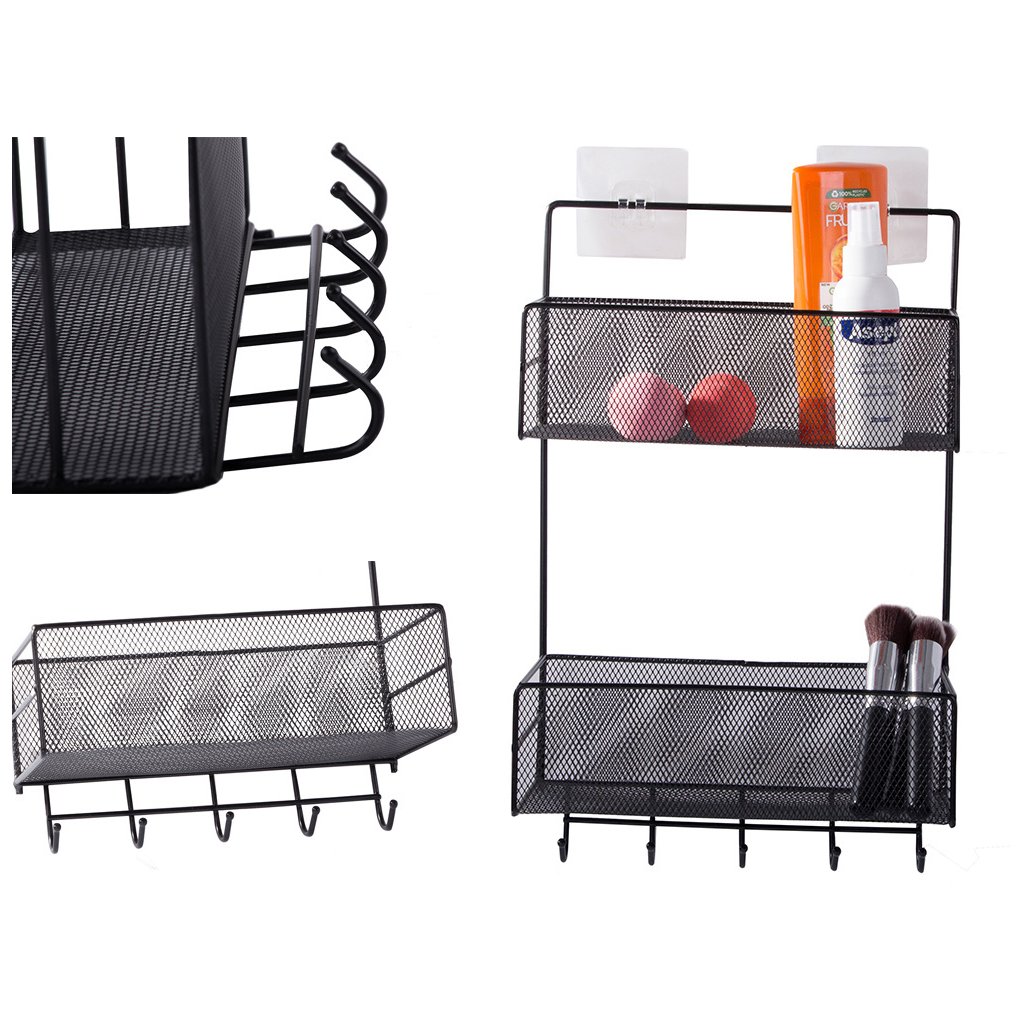 🖤🧴 ZÁVESNÝ KOVOVÝ ORGANIZÉR – 2 POLIČKY A 5 HÁČIKOV DO KÚPEĽNE, KUCHYNE AJ PREDSIENE