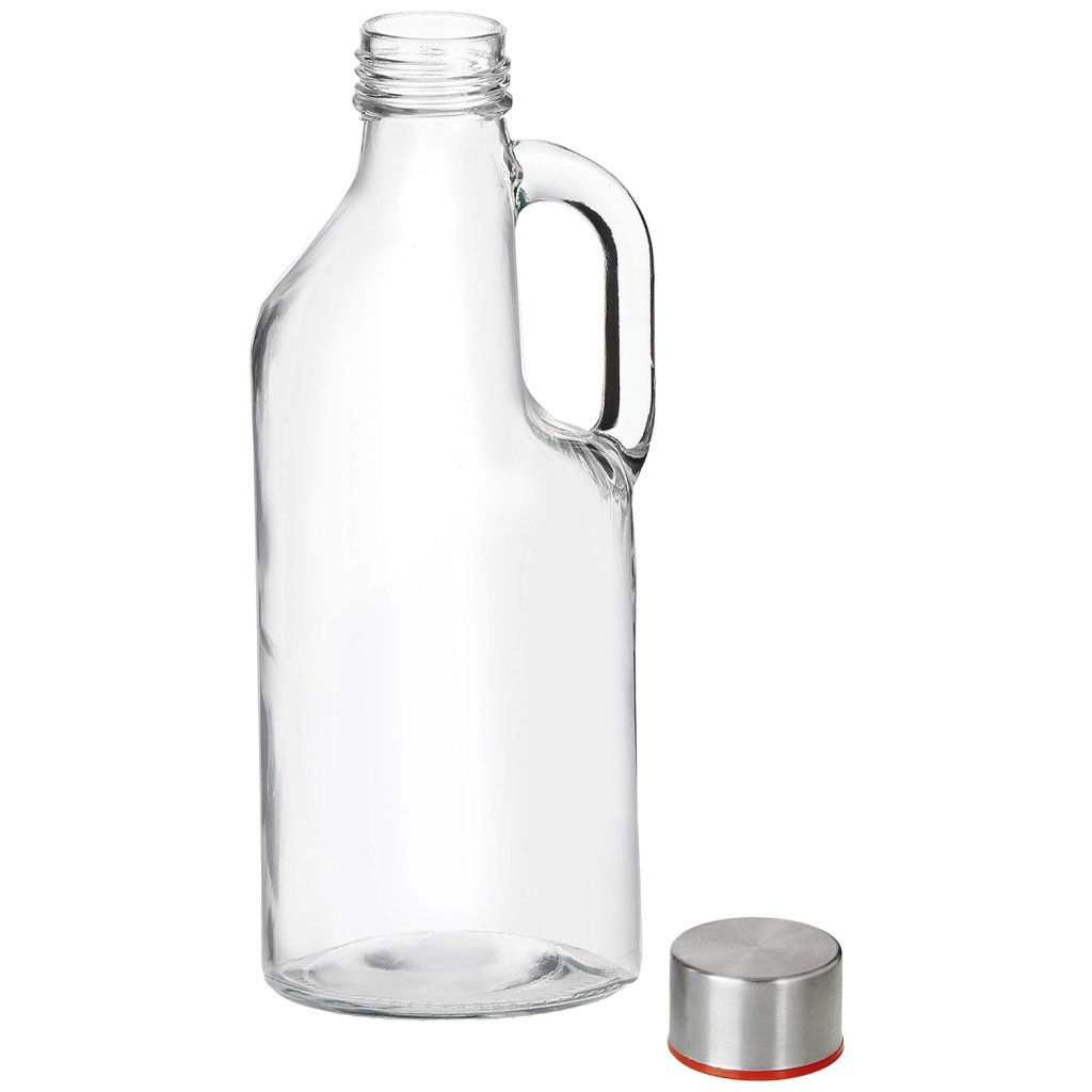 Elegantná, praktická a udržateľná – táto sklenená fľaša s uchom a závitom je skvelým doplnkom pre každého, kto si potrpí na čistý dizajn, funkčnosť a životný štýl bez zbytočného odpadu.