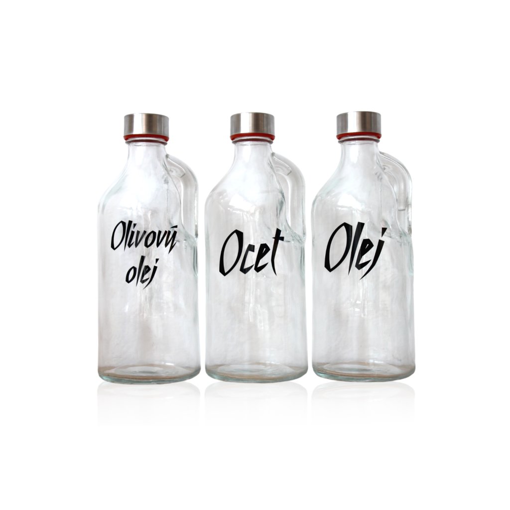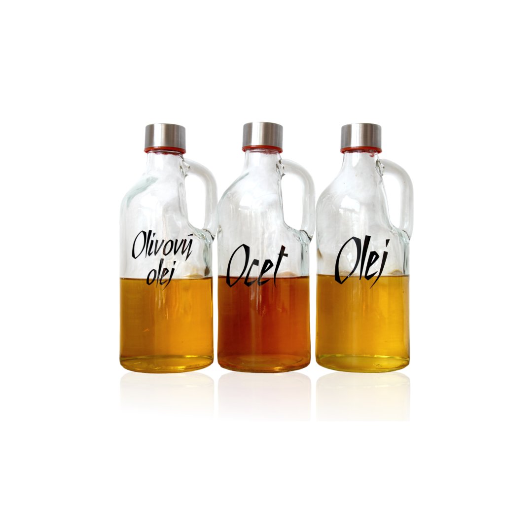 Fľaša na olej, na olivový olej a ocot, s uchom a uzáverom na závit SADA 3*1,15l