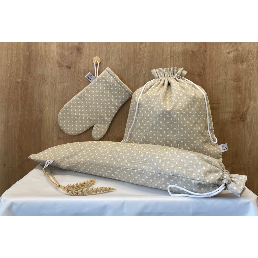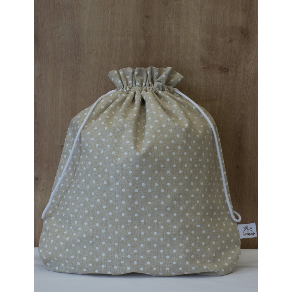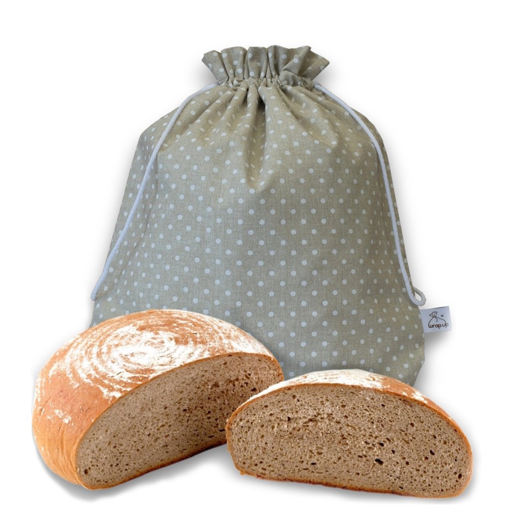 Funkčné vrecko Wrapáček, obal vel. XL na chlieb aj pečivo, režný s bodkou