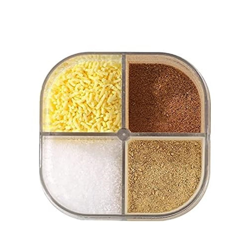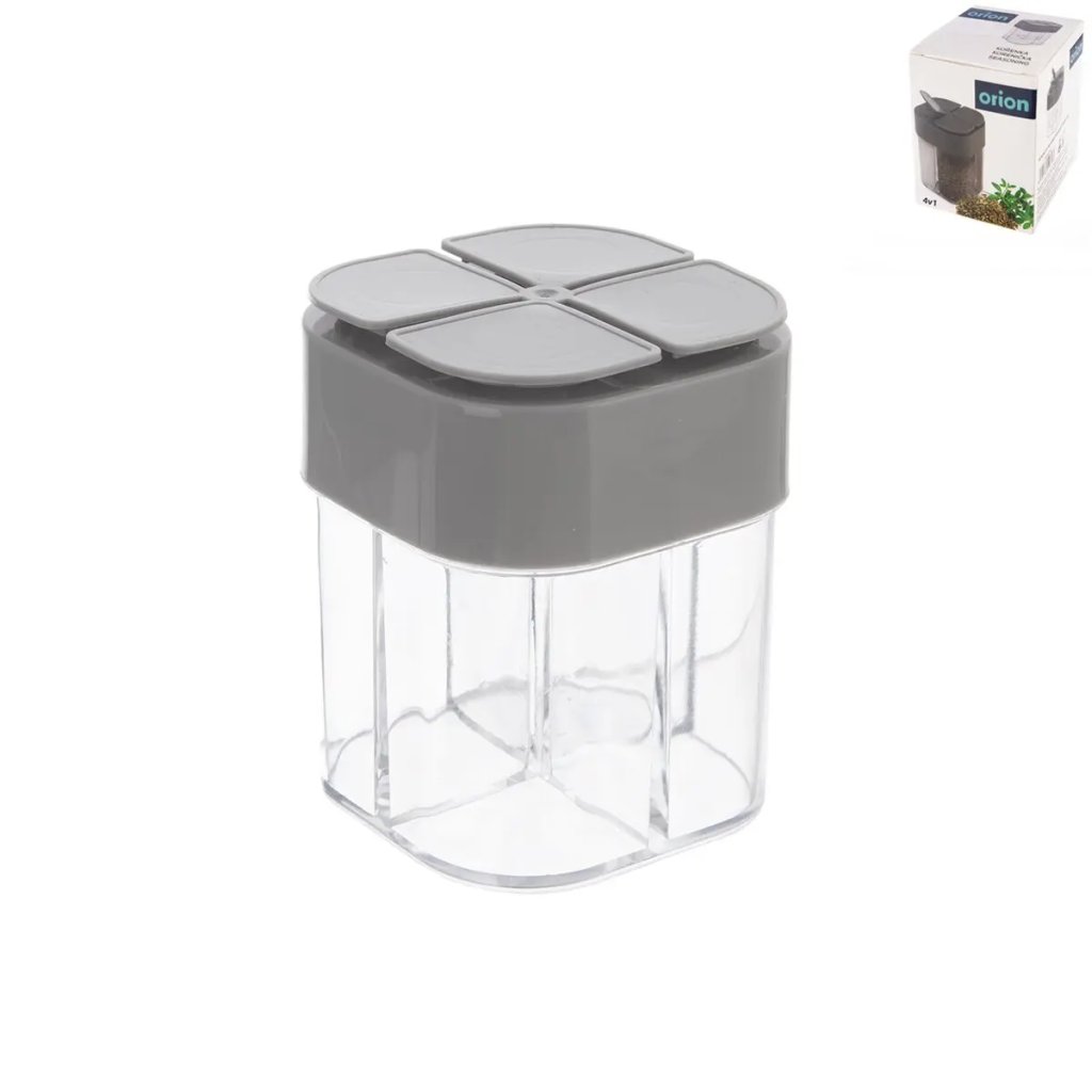Delená korenička, ktorá umožňuje uložiť 4 druhy korenia v jednej nádobe, je skvelým riešením do každej kuchyne, na kempovanie, cestovanie alebo do karavanu. Vďaka kompaktným rozmerom a praktickému dizajnu máte korenie vždy poruke a zaberá minimum miesta.