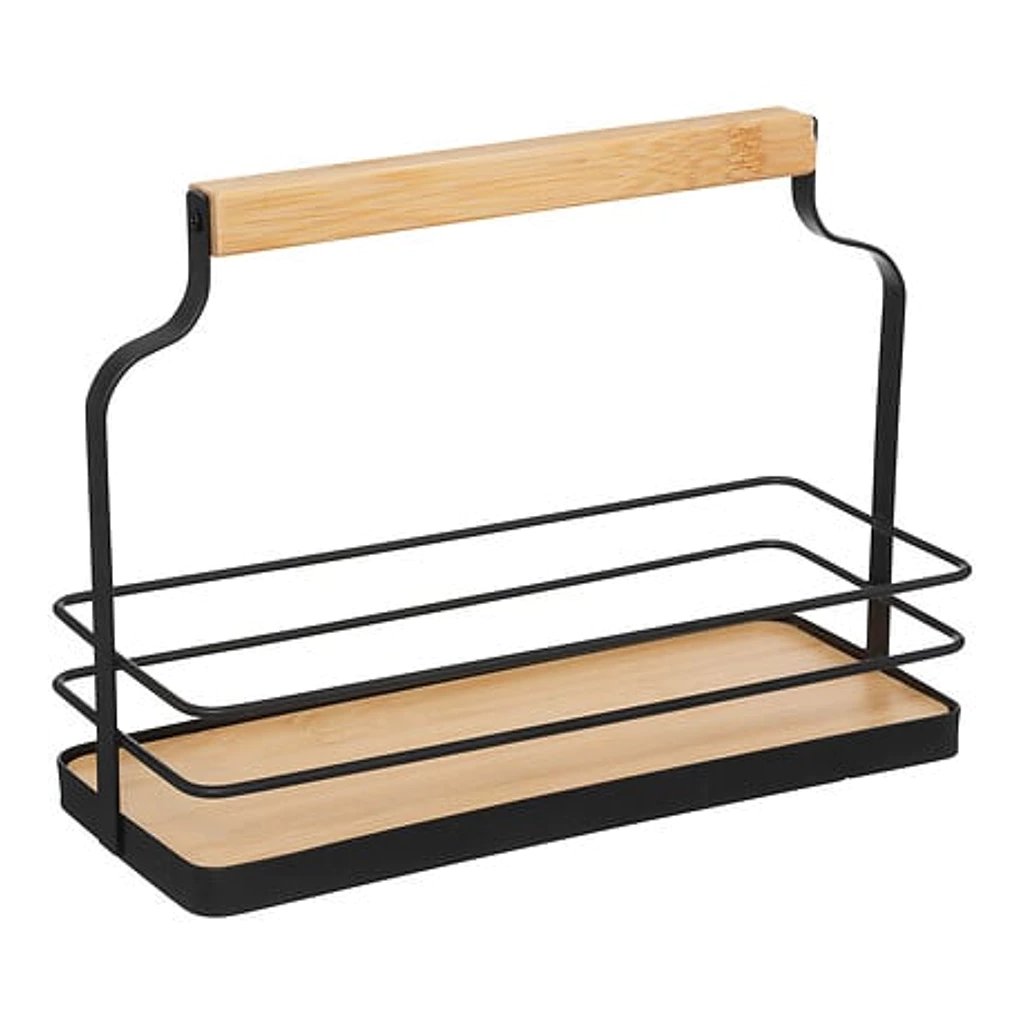 ✔ Kovový nosič – stabilná konštrukcia s praktickou rúčkou z bambusu