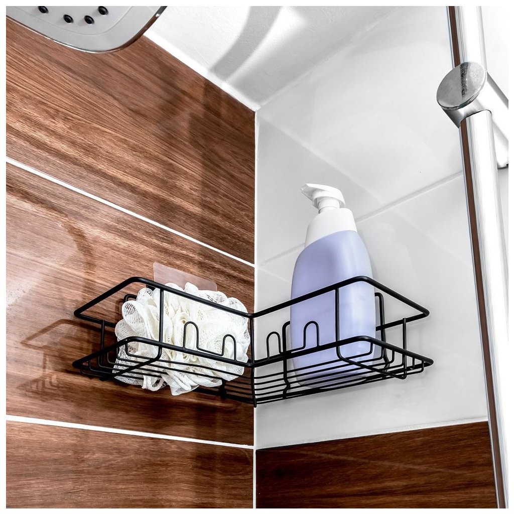 Praktická rohová polička s jednoduchou inštaláciou bez vŕtania, ktorá vám umožní udržať všetky nevyhnutnosti na dosah ruky. Vďaka kvalitnému spracovaniu z nehrdzavejúceho kovu s čiernym práškovým nástrekom dodá interiéru moderný a elegantný vzhľad.