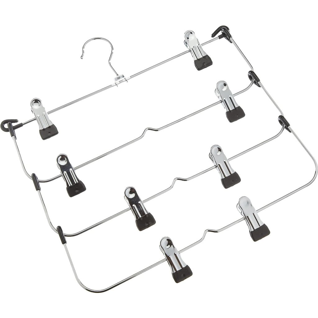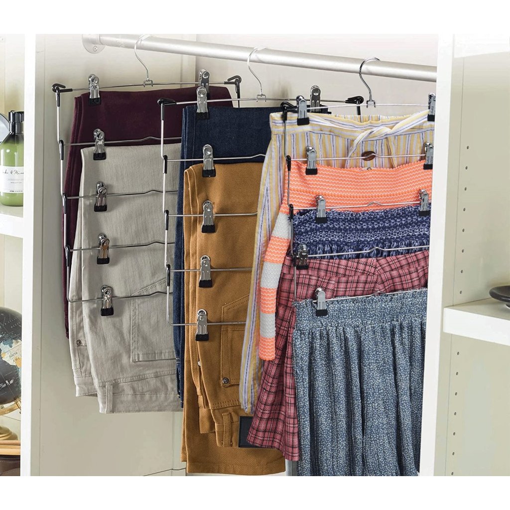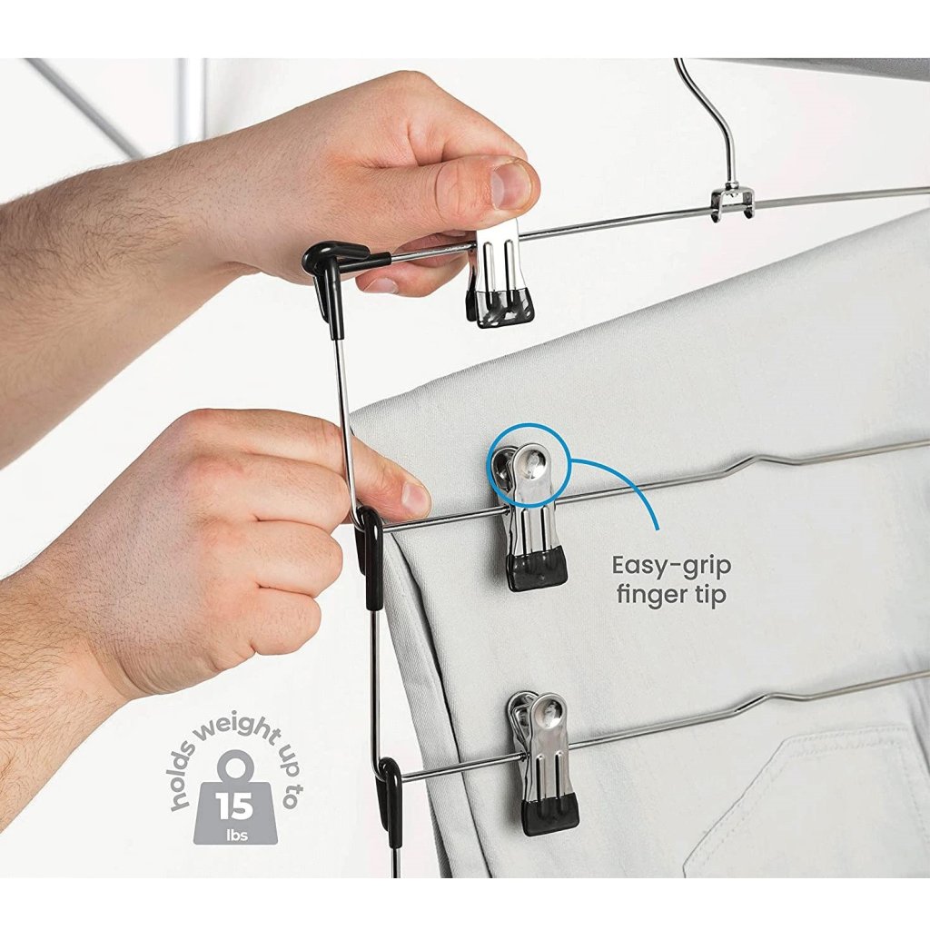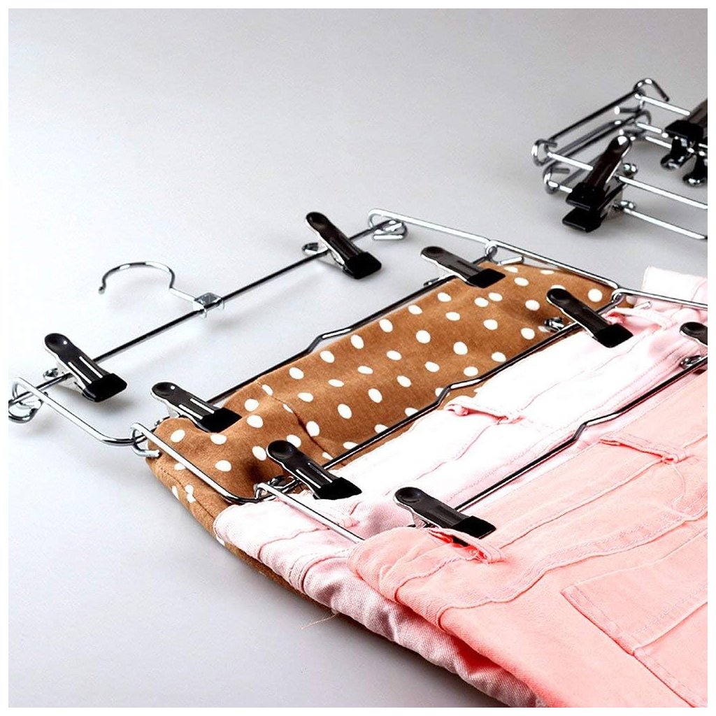 Kovový vešiak na oblečenie s klipmi, na sukne a nohavice, 4 úrovne