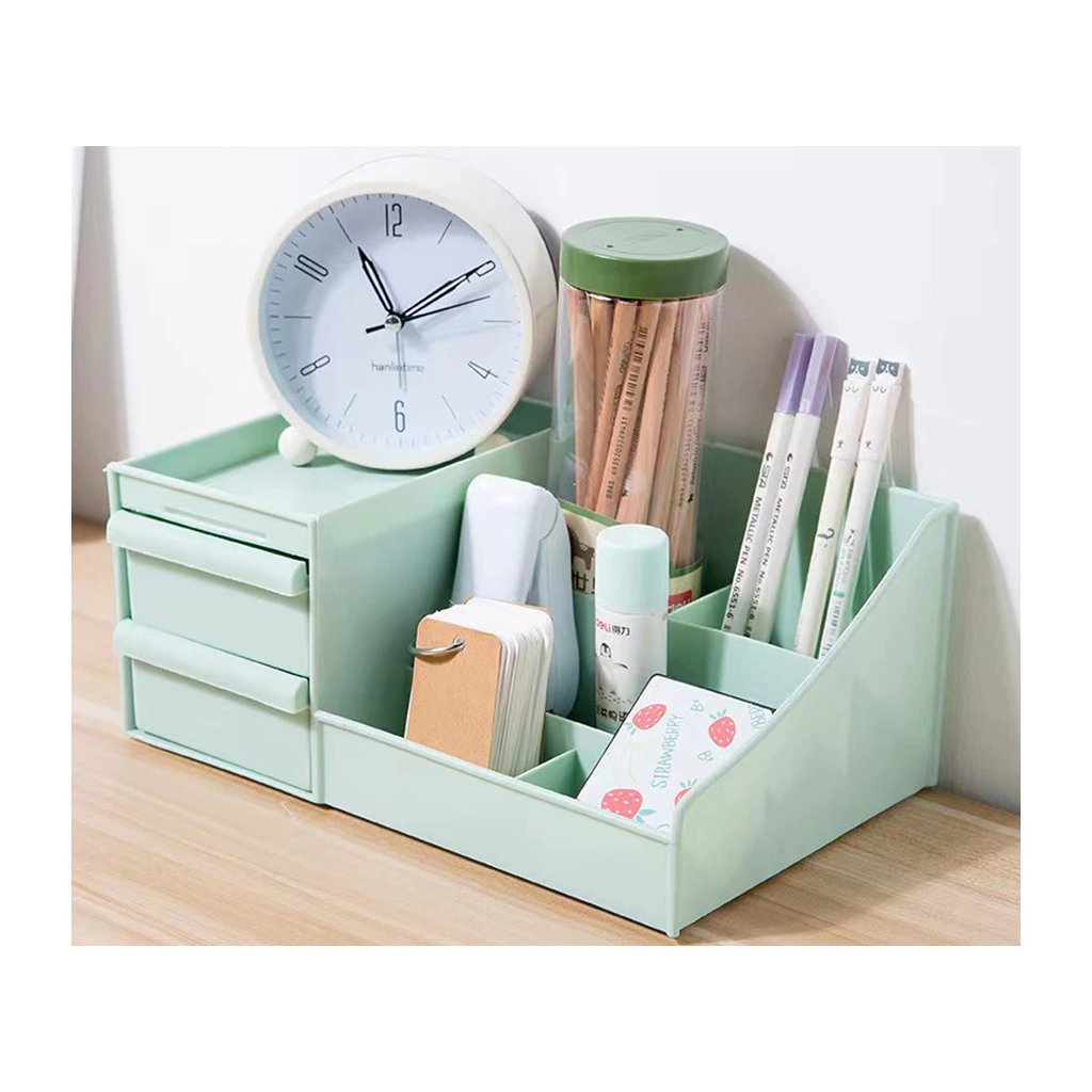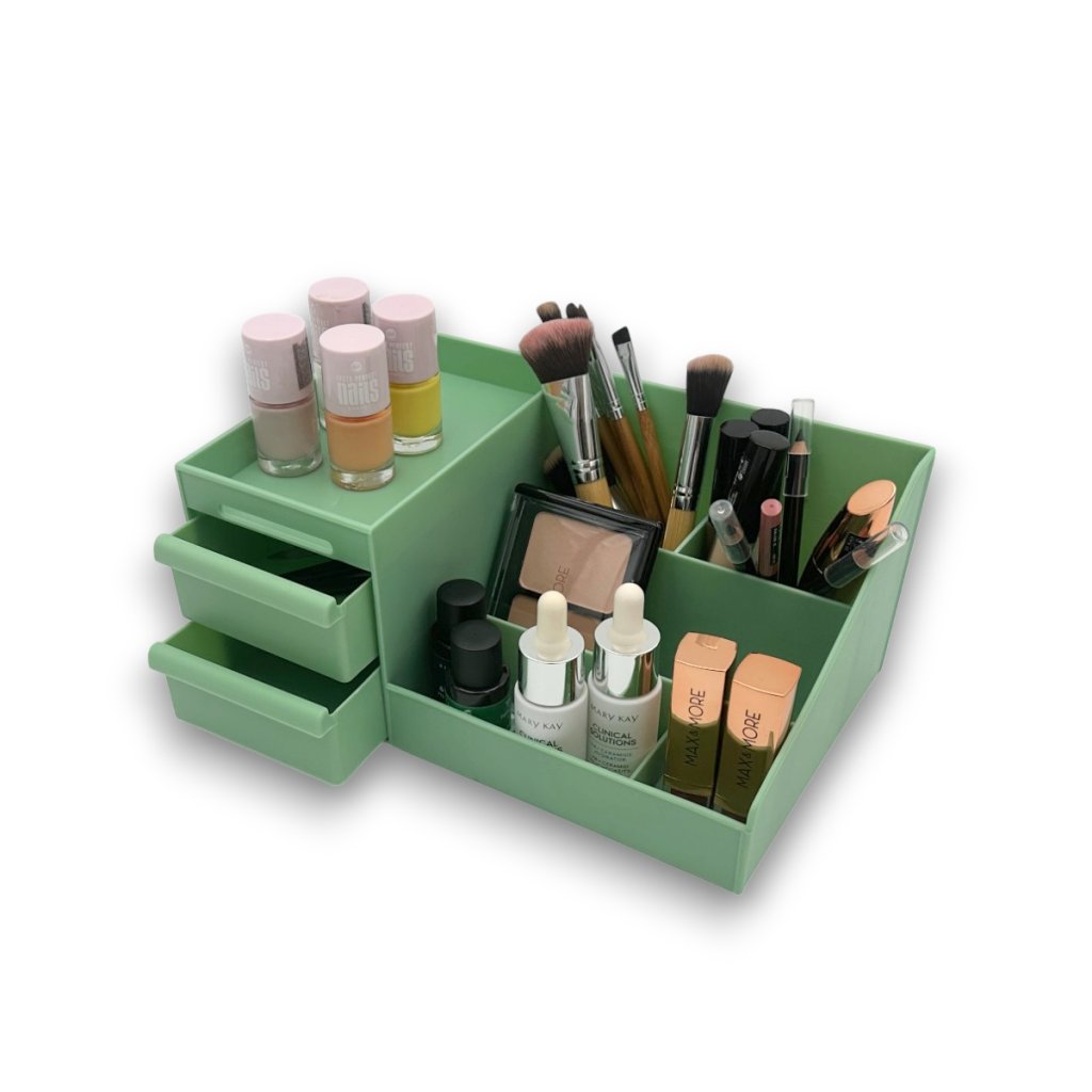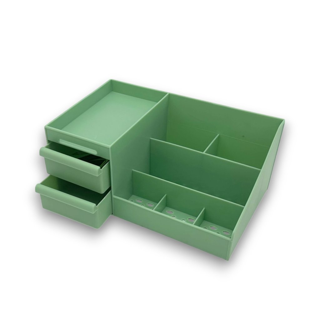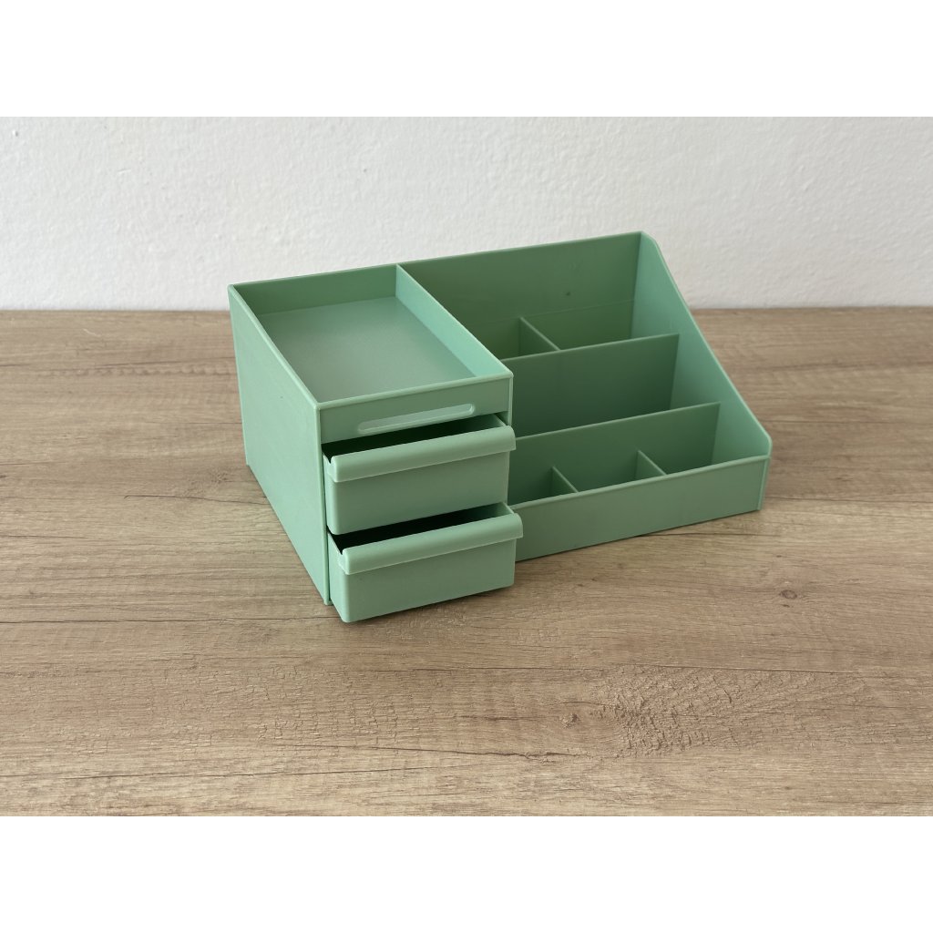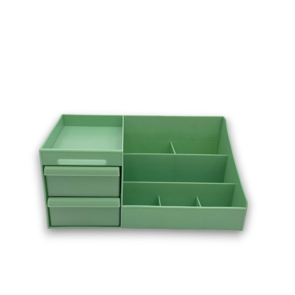 Tento praktický kozmetický organizér s dvoma zásuvkami a stupňovitým usporiadaním vám pomôže zorganizovať každodennú rutinu a zároveň ušetrí miesto na toaletnom stolíku, v kúpeľni aj v kancelárii.
