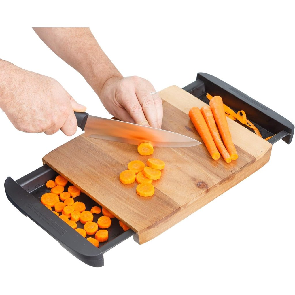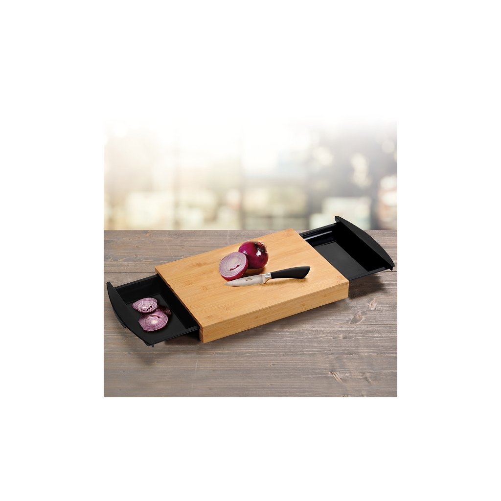 Táto praktická doska z bambusu s integrovanou miskou alebo s dvomi miskami vám uľahčí prípravu jedla, zrýchli upratovanie a prinesie poriadok do každého krájania. Vďaka výsuvným odkvapkávacím miskám môžete pohodlne oddeliť zvyšky alebo prenášať nakrájané suroviny priamo do hrnca. Navyše, vďaka dvom miskám môžete suroviny rozdeliť a pridávať do hrnca postupne, nemusia sa zmiešať.