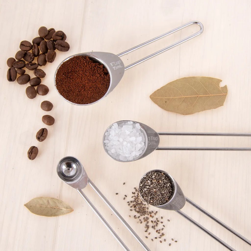 ✔ Sada štyroch nerezových odmeriek ideálna pre presné dávkovanie sypkých aj tekutých ingrediencií – od vanilkového extraktu a prášku do pečiva až po kávu, korenie alebo ocot. Pomôžu ti mať istotu, že každá surovina bude odmeraná správne a opakovane – bez odhadovania bežnou lyžičkou.